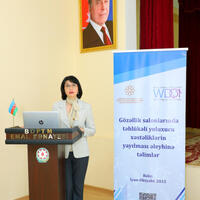 Emal Sənayesi üzrə Bakı Dövlət Peşə Təhsil Mərkəzinin nümayəndəsi Tamam Məmmədova tədbirdə çıxış edərək “İnkişafa Doğru Qadın Təşəbbüsü” İctimai Birliyinin həyata keçirdiyi təlimlərin əhəmiyyətini vurğulayıb.