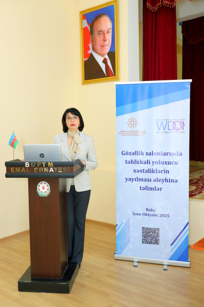 “Əksər hallarda xronikiləşən xəstəliklər uzunmüddətli, hətta ömürlük nəzarət tələb edir. Bu baxımdan təhlükəli yoluxucu xəstəliklərlə mübarizənin ən effektiv yolu profilaktik tədbirlərin vaxtında və davamlı şəkildə həyata keçirilməsidir. Bugünkü təlimin məqsədi gözəllik xidməti göstərilən məkanlarda xroniki viral hepatitlər, İnsan İmmunçatışmazlığı Virusu (İİV/QİÇS) və vərəm kimi təhlükəli infeksion xəstəliklərin yayılması riskini azaldacaq biliklərin tələbələrə çatdırılması və sanitar-gigiyenik qaydalara ciddi riayət olunmasının təşviqidir”.