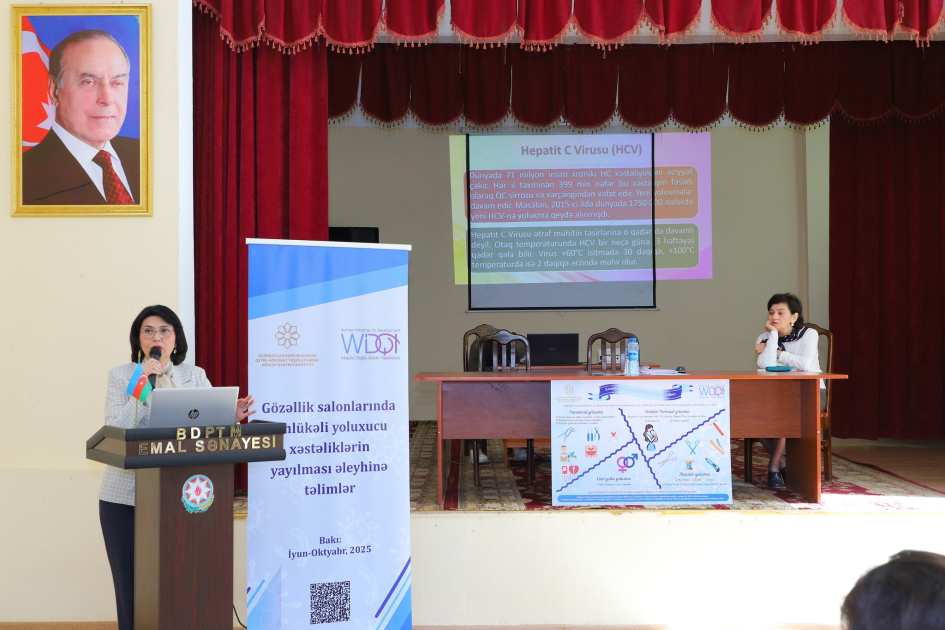 Təlim zamanı Ziba Nəbiyeva elektron təqdimat vasitəsilə xroniki virus hepatitləri və İİV/QİÇS infeksiyalarının ötürülmə yolları, qorunma üsulları, ətraf mühitə davamlılığı, müayinə və müalicə prinsipləri, eləcə də gözəllik salonlarında istifadə edilən alətlərin dezinfeksiya və sterilizasiya qaydaları barədə ətraflı məlumat verib.