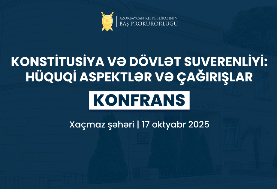 2025-ci il “Konstitusiya və Suverenlik İli” çərçivəsində oktyabrın 17-də Azərbaycan Respublikasının Baş Prokurorluğunun təşkilatçılığı ilə Xaçmaz şəhərində “Konstitusiya və dövlət suverenliyi: Hüquqi aspektlər və çağırışlar” mövzusunda işgüzar konfrans təşkil ediləcək. SİA-nın bölgə müxbiri xəbər verir ki, həmin gün Baş Prokurorluğun təşəbbüsü ilə Xaçmaz Rayon Prokurorluğunda “Açıq qapı” günü və “Milli suverenlik və hüquqi təminatlar: Prokurorluğun rolu” adlı seminar da təşkil olunacaq.