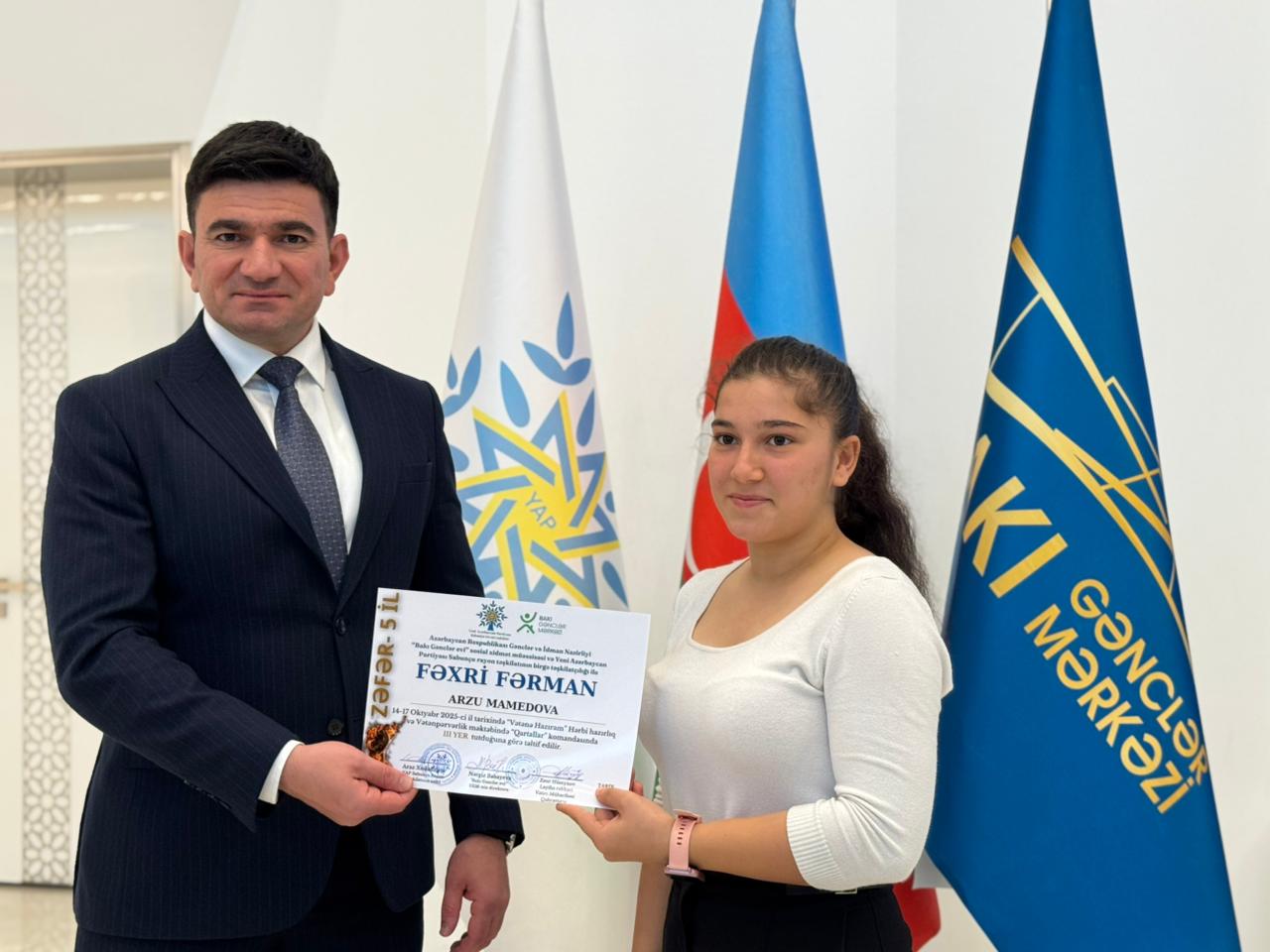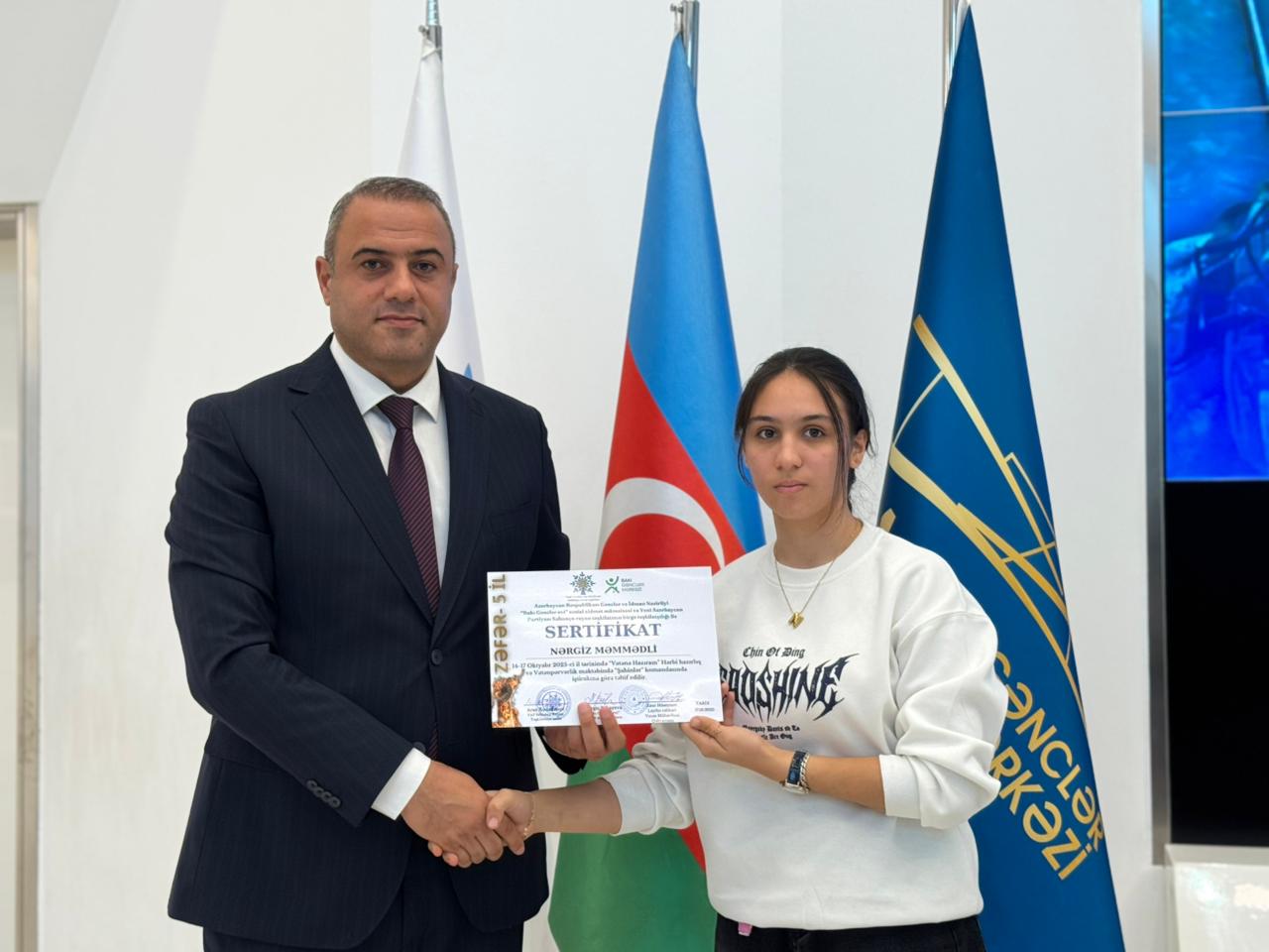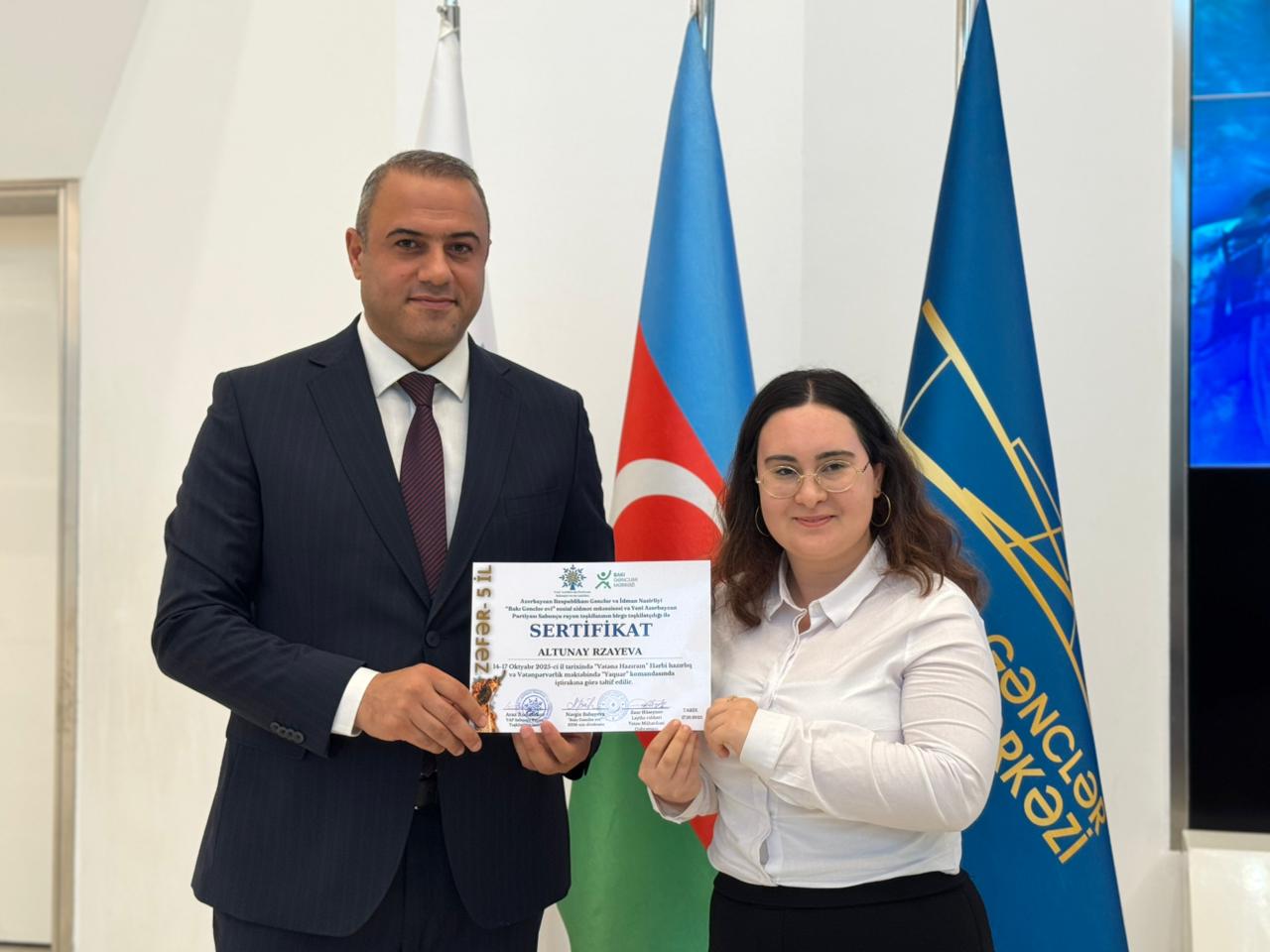 Daha sonra çıxış edən Bakı Gənclər Mərkəzinin direktoru Nərgiz Babayeva bildirib ki, layihədə iştirak edəcək gənclər Azərbaycan Ordusu haqqında ilkin nəzəri və praktiki biliklər qazanacaq, intizam və komanda bacarıqlarını inkişaf etdirəcəklər.