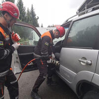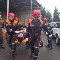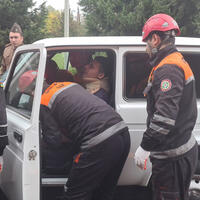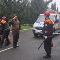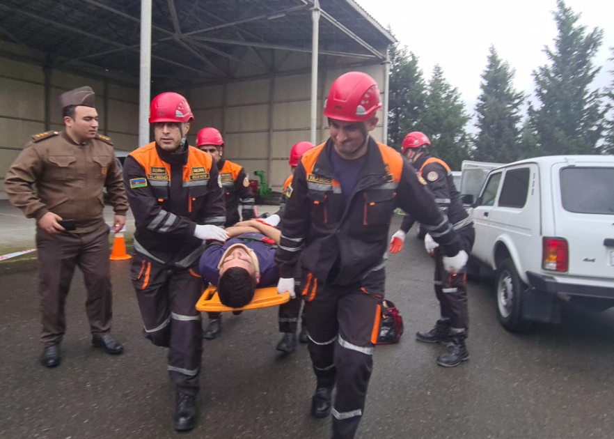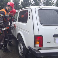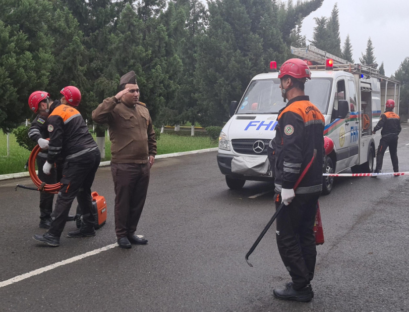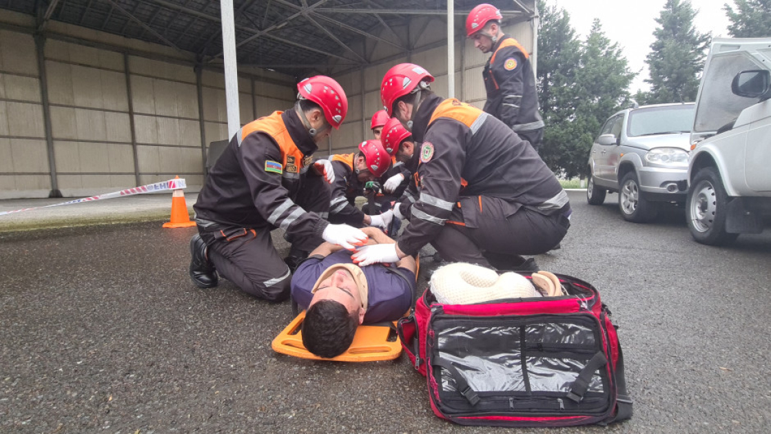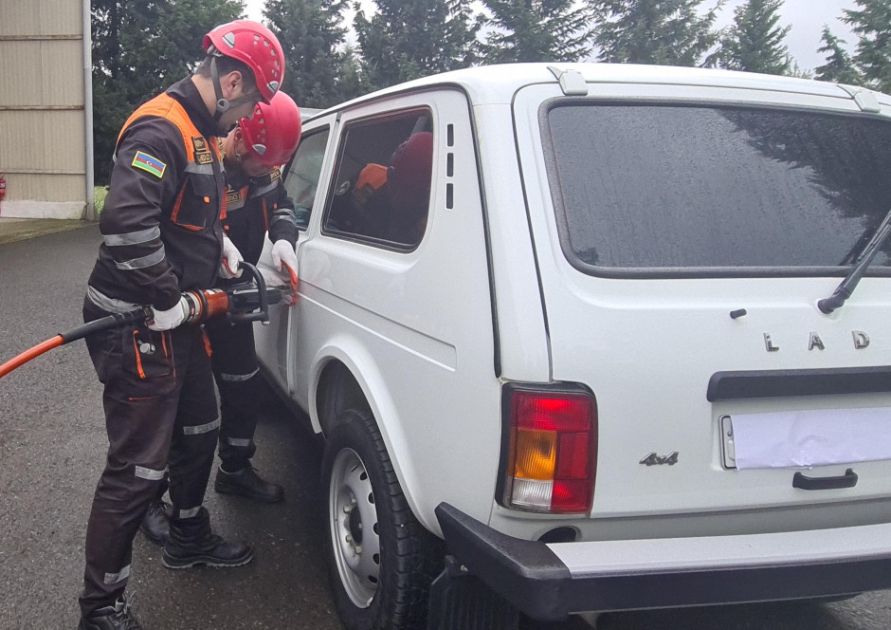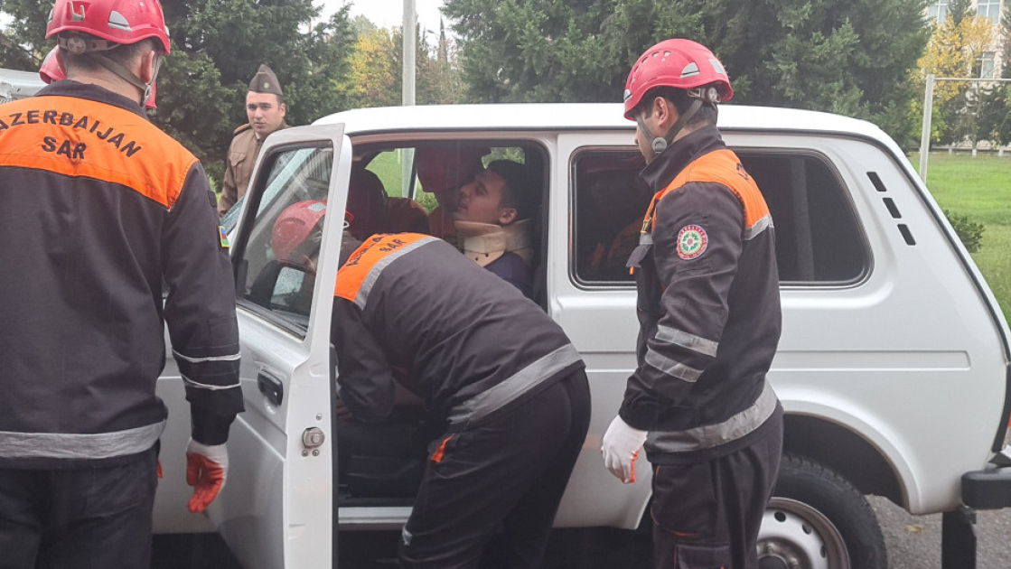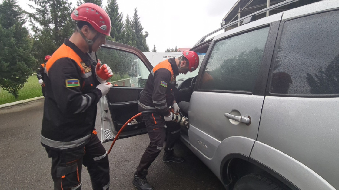 Təlim zamanı xilasedicilər tərəfindən şərti nəqliyyat qəzası zamanı deformasiyaya uğramış avtomobildən “zərərçəkmişlər” xilas edilərək onlara təxirəsalınmaz ilkin yardım göstərilib.