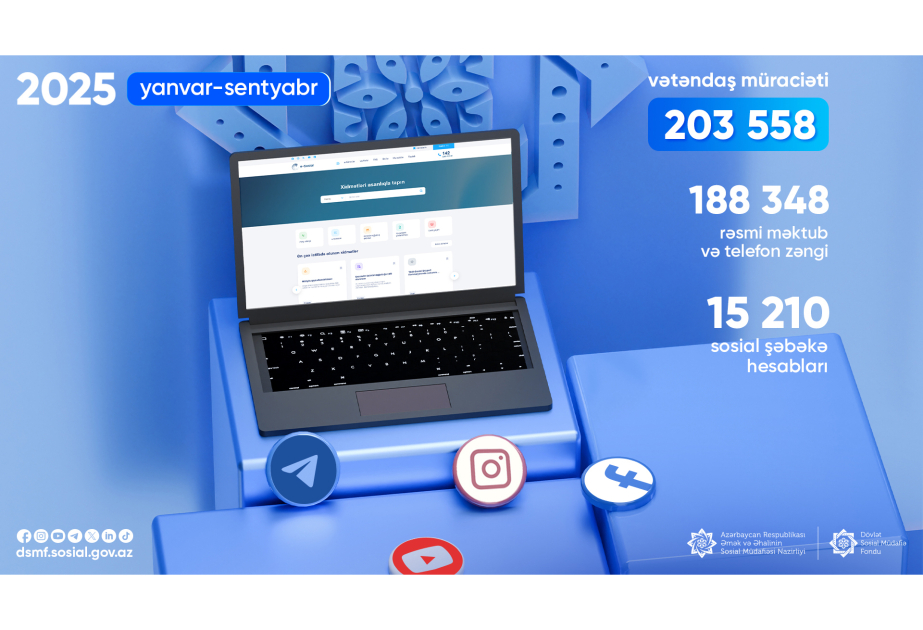Bu ilin yanvar-sentyabr ayları ərzində Dövlət Sosial Müdafiə Fondu (DSMF) tərəfindən ümumilikdə məktub, telefon zəngi və sosial şəbəkə hesabları vasitəsilə 203 min 558 vətəndaş müraciəti cavablandırılıb. Bu barədə SİA-ya fondun mətbuat xidmətindən məlumat verilib.