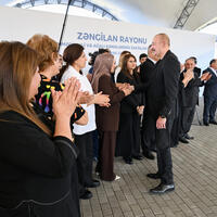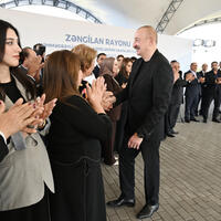 Prezident İlham Əliyev: Uzun illər ərzində ağır şəraitdə yaşamısınız. Köçkün həyatı çox ağır həyatdır. Ancaq artıq o günlər arxada qaldı. Beş ilə yaxındır ki, Azərbaycan öz ərazi bütövlüyünü bərpa edib və azad olunmuş bütün torpaqlarda geniş quruculuq işləri gedir, o cümlədən Zəngilan rayonunda. Yenə də deyirəm, birinci “Böyük Qayıdış” Proqramını biz Zəngilan rayonundan başlamışdıq. Bu gün Zəngilan şəhərində də birinci yaşayış kompleksinin tikintisi demək olar ki, yekunlaşır. Digər binaların tikintisi, məktəb, xəstəxana. Zəngilan məscidi tikilmişdir, gözəl bir memarlıq əsəridir. Konqres Mərkəzi, Zəngilan Beynəlxalq Hava Limanı. Yəni, bura, bu bölgə çox önəmli nəqliyyat mərkəzlərindən birinə çevriləcək. Həm Zəngəzur dəhlizi, həm Araz dəhlizi buradan keçəcək. Ona görə bu rayonun, bu bölgənin çox gözəl gələcəyi olacaq. Necə ki, bütün Qarabağın, Şərqi Zəngəzurun gələcəyi çox parlaq olacaq. Bugünkü reallıq - qurduğumuz şəhərlər və kəndlər bunu göstərir.