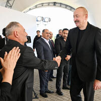 Ermənilər viran qoyub bizim dədə-baba torpaqlarımızı, biz isə qurub-yaradan xalqıq. Biz düşməni torpaqlarımızdan qovmuşuq. İndi də doğma torpağımızda qurub-yaradırıq, şərait yaradırıq, binalar, məscidlər tikirik, tarixi abidələri bərpa edirik. Yəni, biz - bu torpaqların sahibləri qayıtmışıq və burada əbədi yaşayacağıq. Mən sizə də xoşbəxt həyat arzulayıram. Bir daha sizi təbrik edirəm.