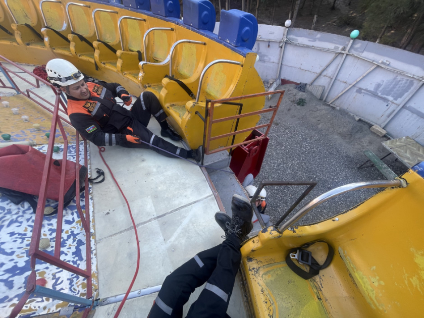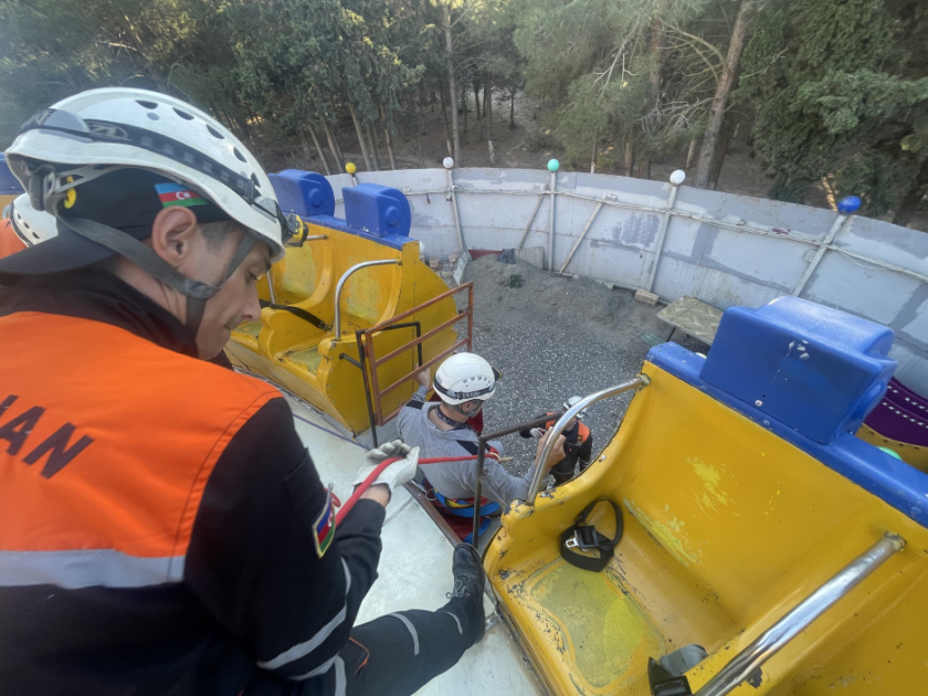 Təlim zamanı xilasedicilər tərəfindən şərti olaraq attraksionda köməksiz vəziyyətdə qalmış zərərçəkmiş “xilas edilərək təxirəsalınmaz ilkin yardım göstərilib”.