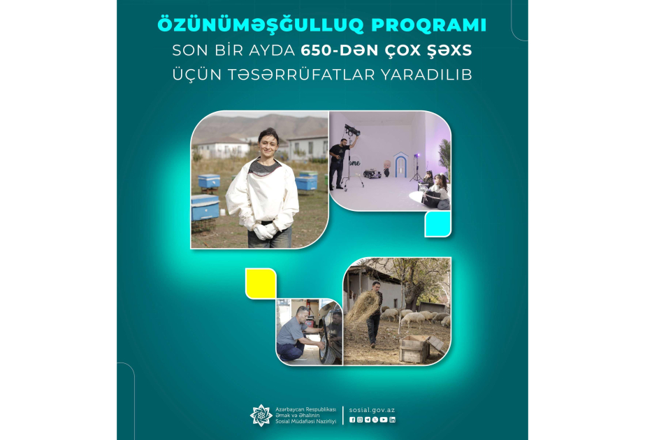 Əmək və Əhalinin Sosial Müdafiəsi Nazirliyinin tabeliyindəki Dövlət Məşğulluq Agentliyi özünüməşğulluq proqramı iştirakçılarının aktivlərlə təminatını davam etdirir. Nazirliyin İctimaiyyətlə əlaqələr şöbəsindən SİA-ya verilən məlumata görə, ötən ay paytaxt və regionlarda daha 654 işsiz və işaxtarana həmin proqram çərçivəsində mal və materiallar formasında aktivlər təqdim olunub.