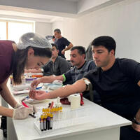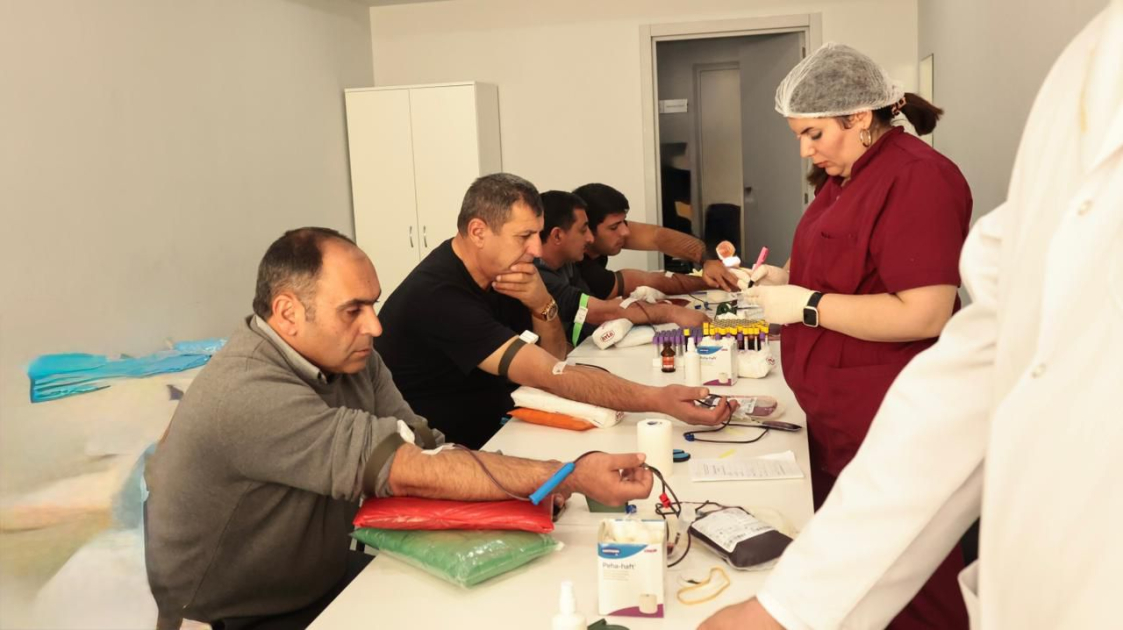 Aksiyada Respublika Qan Bankının Bərdə bölməsinin xüsusi tibb briqadasının həkimləri tərəfindən donorların sağlamlıq vəziyyəti yoxlanıldıqdan sonra onlardan qan götürülüb.