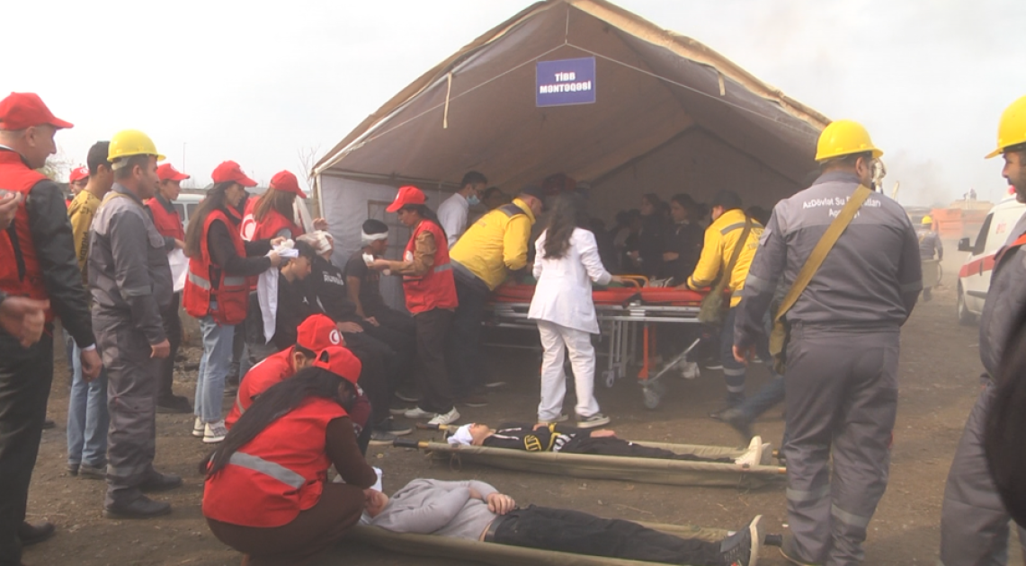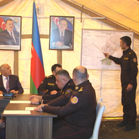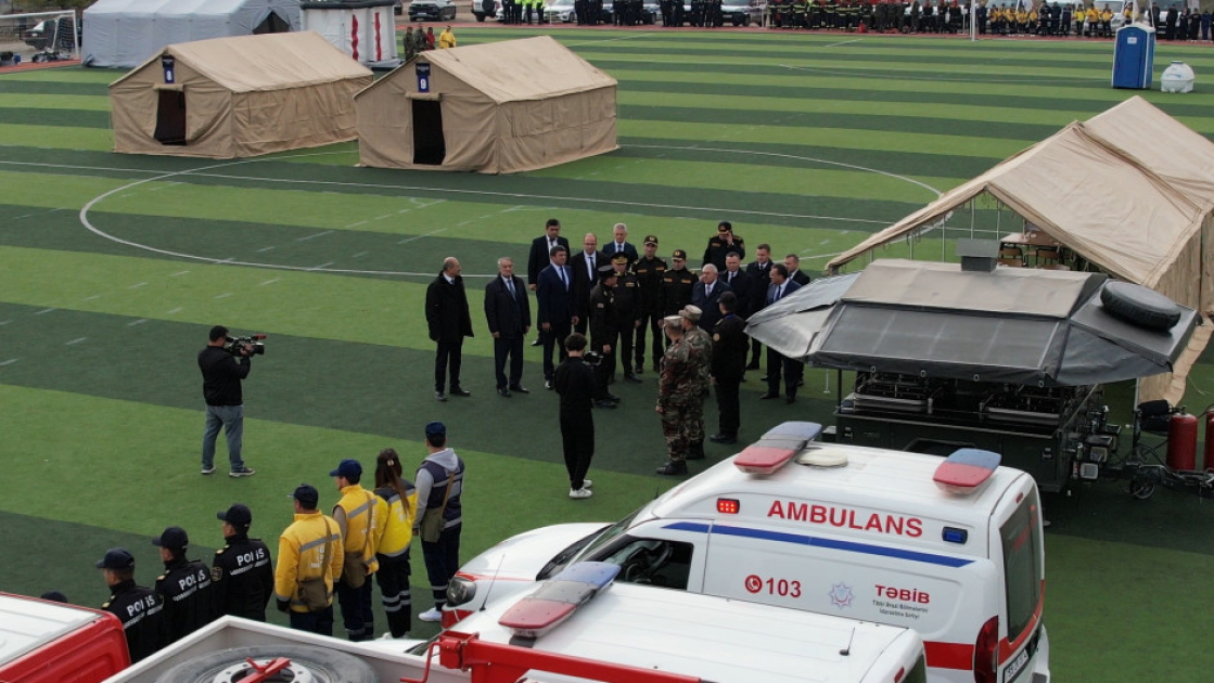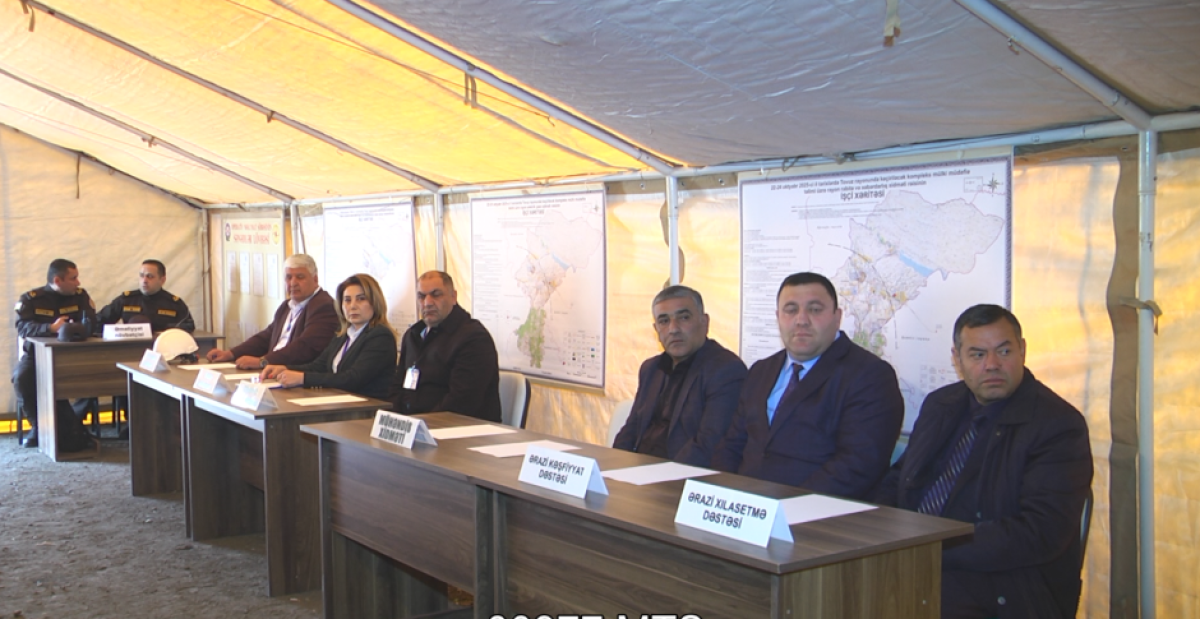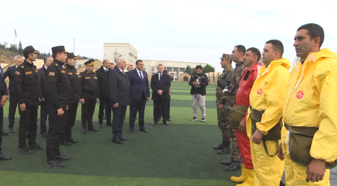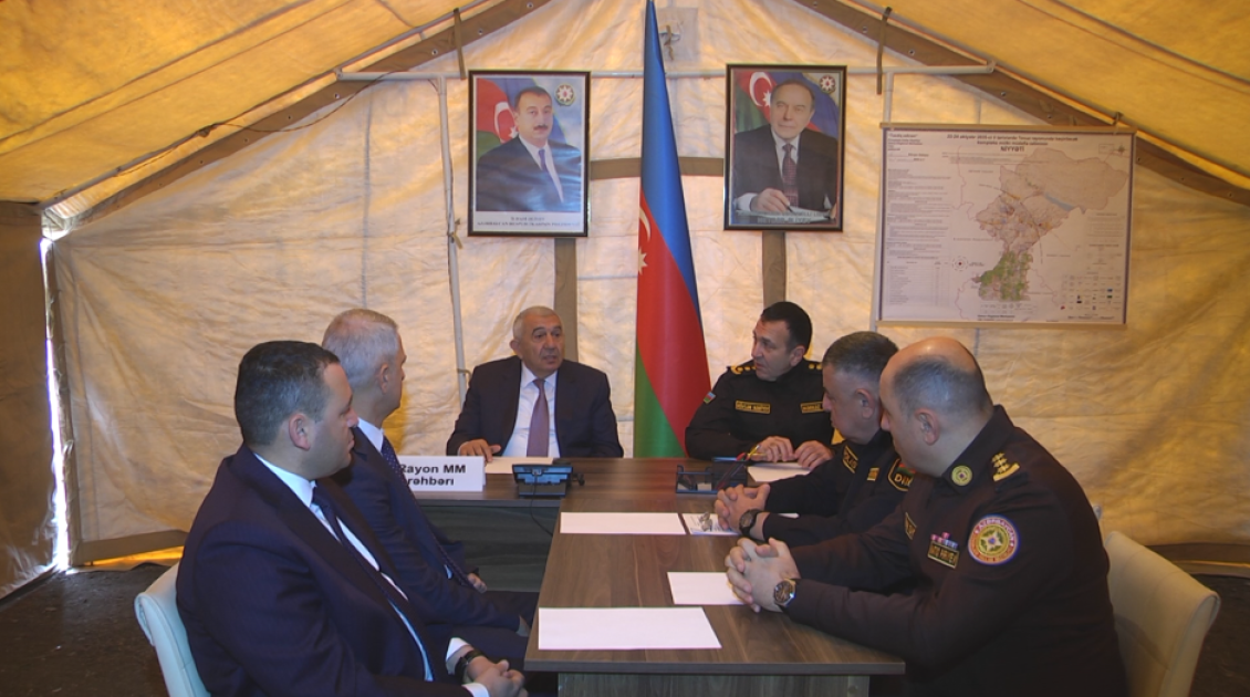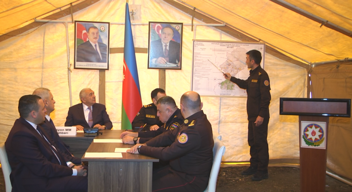 Tədbirdə əvvəlcə şərti fövqəladə hal zamanı “əhalinin köçürülməsi” üçün hazırlanmış çadır şəhərciyinə baş çəkilib, mülki müdafiə dəstələrinə sıra baxışı keçirildikdən sonra təlim üçün nəzərdə tutulmuş qərargahda müşavirə keçirilib.