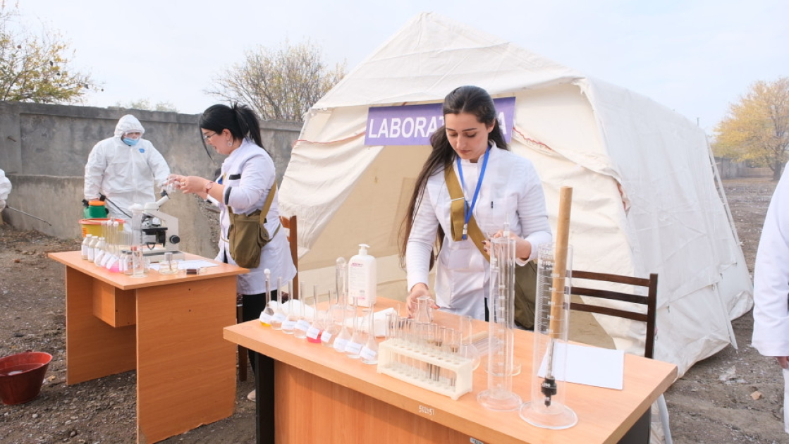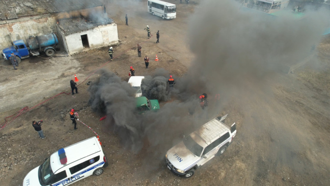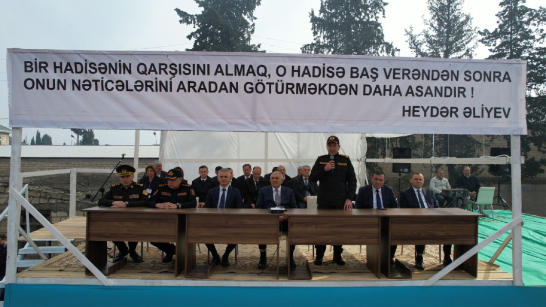 Sonra kompleks mülki müdafiə təliminə start verilib. Təlim zamanı şərti irimiqyaslı fövqəladə hadisə zamanı FHN-in qüvvələri ilə rayonun hərbiləşdirilməmiş mülki müdafiə dəstələri arasında qarşılıqlı fəaliyyətin və əməliyyat qərargahının işinin təşkili, “yanğınsöndürmə, xilasetmə və digər təxirəsalınmaz tədbirlər” uğurla həyata keçirilib, qarşıya qoyulmuş məqsədlərə nail olunub.