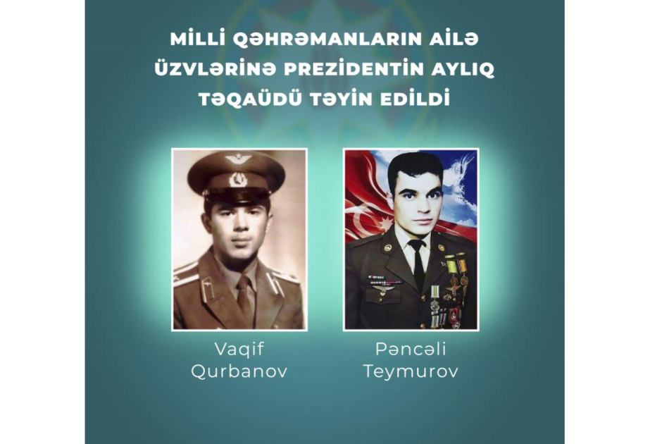 Prezident İlham Əliyevin imzaladığı yeni Sərəncamlarla "Azərbaycanın Milli Qəhrəmanı" adı verilmiş Teymurov Pəncəli Nurməmməd oğlunun və Qurbanov Vaqif Bəxtiyar oğlunun ailə üzvlərinə Prezidentin aylıq təqaüdü təyin edilib.