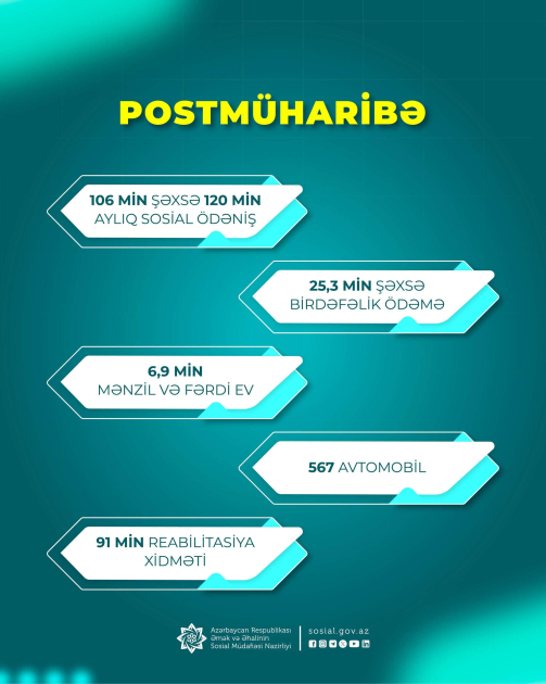 Əmək və Əhalinin Sosial Müdafiəsi Nazirliyinin İctimaiyyətlə əlaqələr şöbəsindən AZƏRTAC-a verilən məlumata görə, həmin sosial dəstək paketi üzrə postmüharibə dövründə: