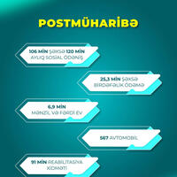 • şəhid ailələri üzvləri və müharibə iştirakçıları olan 11 min şəxsə 91 min sosial-psixoloji dəstək və reabilitasiya xidməti göstərilib;