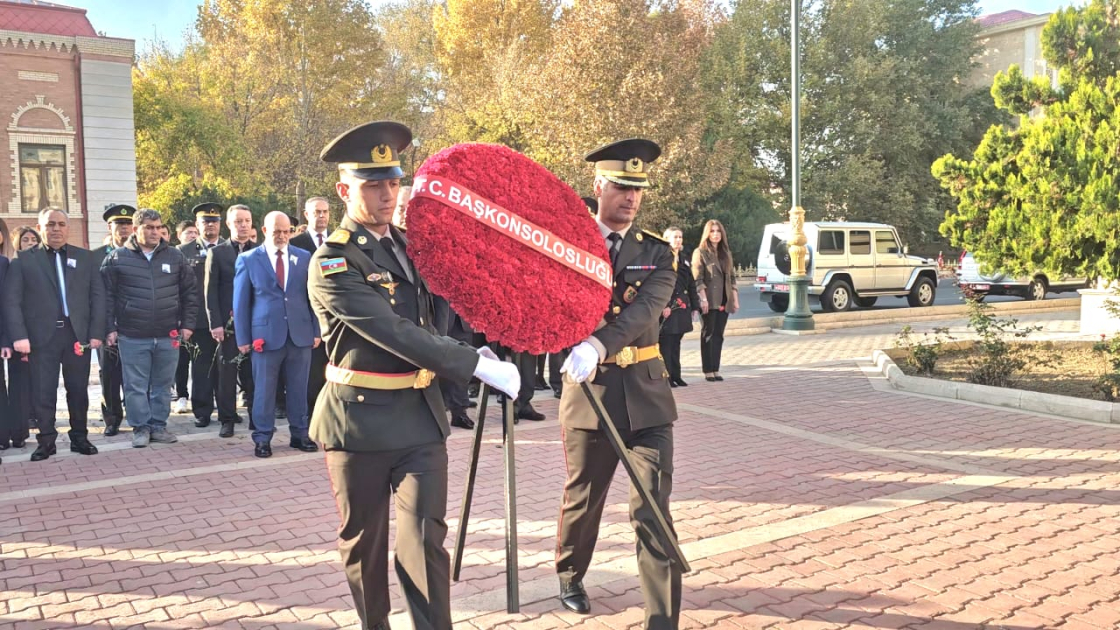 Türkiyənin Naxçıvan Muxtar Respublikasındakı baş konsulu Asip Kaya abidə önünə gül çələngi qoyub.