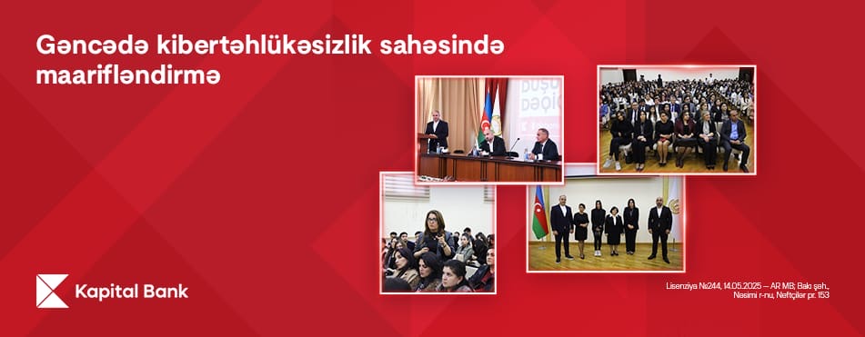 Xatırladaq ki, Kapital Bank tərəfindən həyata keçirilən “Dayan, Düşün, Dəqiqləşdir” kampaniyası çərçivəsində ölkə üzrə maarifləndirici təşəbbüslər həyata keçirilir. Bank təlimlərlə yanaşı, kütləvi informasiya vasitələrində kibertəhlükəsizliklə bağlı press-relizlər, sosial şəbəkələrdə videoçarxlar və posterlər paylaşaraq, vətəndaşların məlumatlılığının artırılmasına dəstək olur.