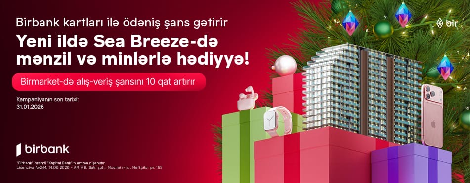 Birbank Yeni il lotereyası ilə müştərilərinə Sea Breeze-də mənzil və minlərlə hədiyyə qazanmaq fürsəti yaradır. Belə ki, indi Birbank debet, Birbank taksit və Birbank Star kartı ilə edilən ödənişlər Yeni il lotereyasında öz sahiblərinə şans gətirir. Lotereya 17 noyabr 2025-ci il – 31 yanvar 2026-cı il tarixləri ərzində edilən bütün ödənişlərə şamil edilir.