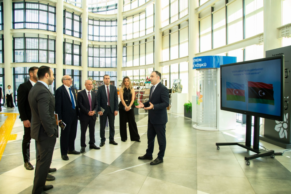 Liviya Dövlətinin Baş nazirinin müşaviri Mohamed Abdusalamın rəhbərlik etdiyi nümayəndə heyəti “ASAN xidmət” təcrübəsini öyrənmək məqsədilə ölkəmizə səfər edib. Azərbaycan Respublikasının Prezidenti yanında Vətəndaşlara Xidmət və Sosial İnnovasiyalar üzrə Dövlət Agentliyinin İctimaiyyətlə əlaqələr şöbəsindən SİA-ya verilən məlumata görə, Dövlət Agentliyinin sədri Ülvi Mehdiyev qonaqlara Prezident İlham Əliyevin təşəbbüsü əsasında yaradılmış “ASAN xidmət” mərkəzləri, həmçinin dövlət xidmətlərində tətbiq olunan innovativ həllər barədə ətraflı məlumat verib. Təqdimat zamanı hazırda Azərbaycanın bu intellektual brendinin 30-dan çox ölkəyə ixrac edildiyi diqqətə çatdırılıb.