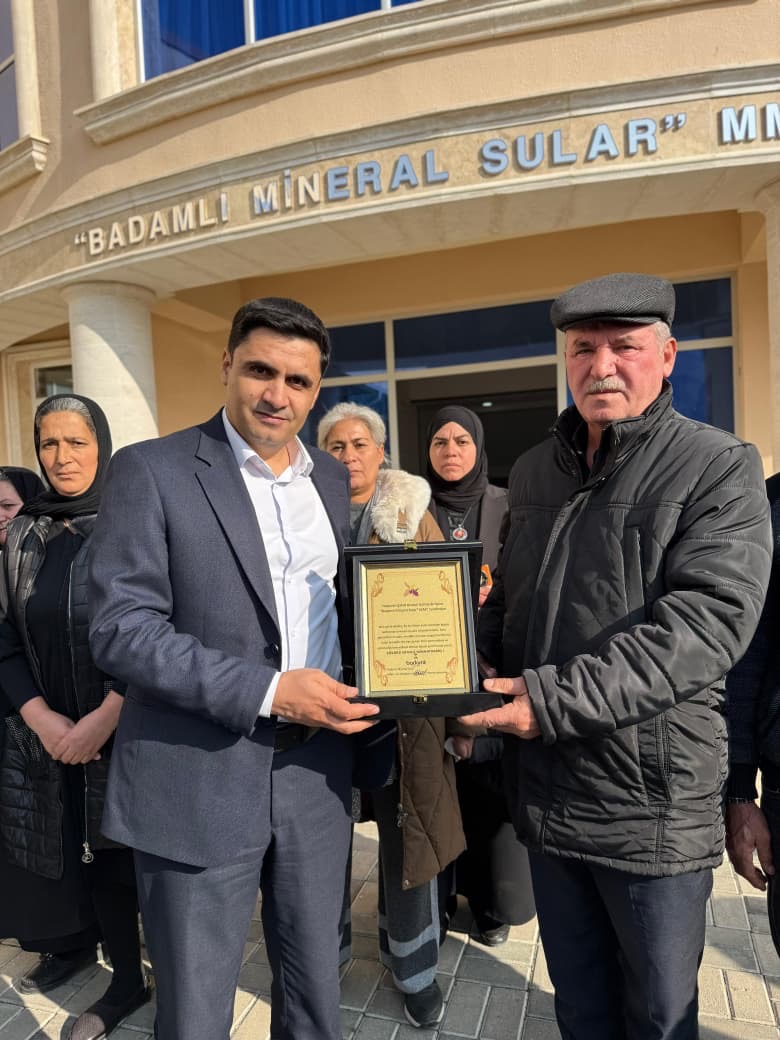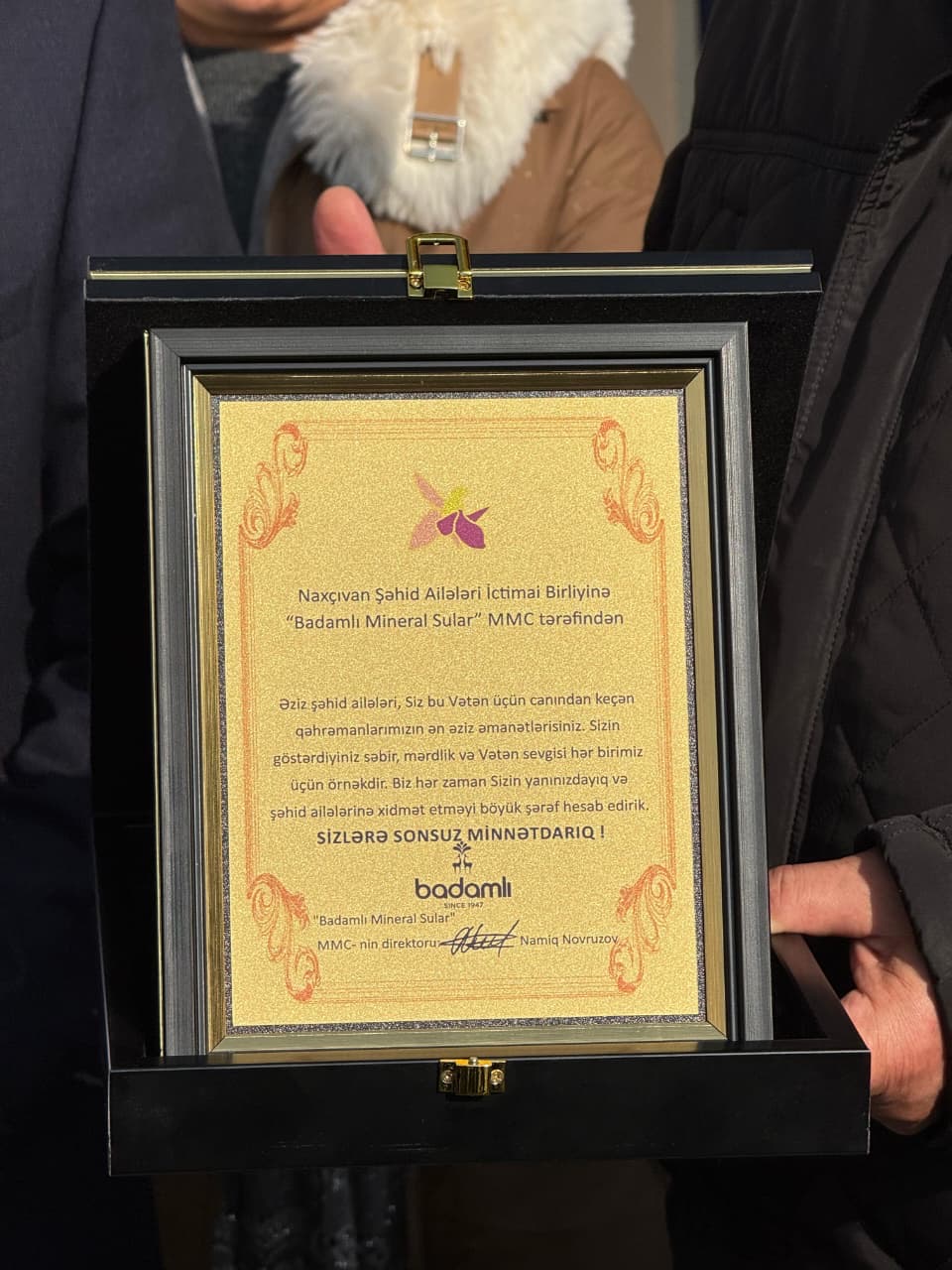 27 noyabrda Naxçıvan Şəhid Ailələri İctimai Birliyinin təşşəbüsü ilə Naxçıvan Şəhidlərinin Valideyinləri "Badamlı" və "Sirab" mineral sular zavodları ziyarəti çərçivəsində, zavodların istehsal prosesi ilə tanış olmuş, yerdən çıxan təbii mineral suyun bulağına baxış keçirmiş, xatirə şəkilləri çəkilmişdir. SİA xəbər verir ki, mineral sular kollektivi Şəhid ailələrinə minnətdarlıq etmiş, qəhrəman Şəhidlərimizi yad etmişdir. İctimai birliyə müəssisə adından minnətdatlıq plaketləri təqdim edilmişdir. Daha sonra müəsissədə Şəhid ailələri üçün çay süfrəsi açılmışdır.