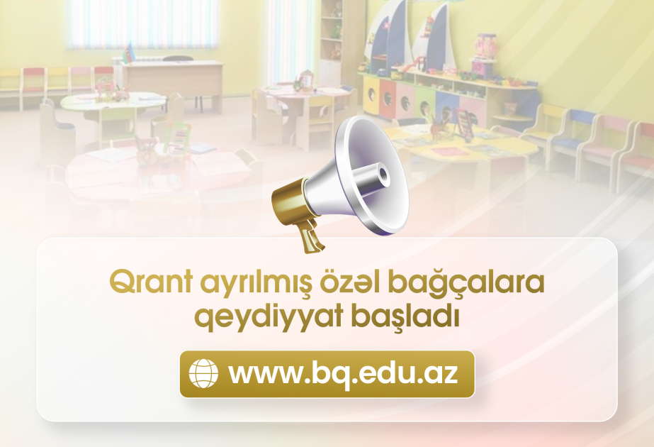Özəl məktəbəqədər təhsil müəssisələri üçün qrant müsabiqəsi çərçivəsində qalib gəlmiş özəl bağçalara elektron portal üzərindən qeydiyyat prosesinə start verilib. Valideynlərə www.bq.edu.az portalı vasitəsilə övladlarını qeydiyyatdan keçirmələri tövsiyə olunur. Bu barədə SİA-ya Elm və Təhsil Nazirliyindən məlumat verilib.