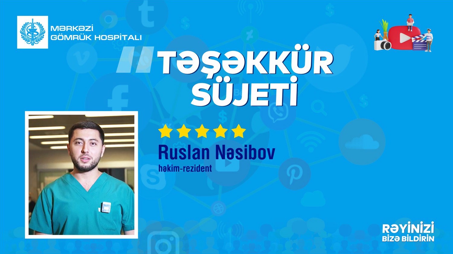Mərkəzi Gömrük Hospitalının Travmatologiya və Ortopediya şöbəsinin ikinci kurs həkim-rezidenti Ruslan Nəsibov peşəkar inkişafına və təcrübə qazanmasına yaradılan şəraitə və xüsusi qayğıya görə Azərbaycan Respublikası Dövlət Gömrük Komitəsi Tibbi Xidmət İdarəsinin rəisi, t.ü.f.d., Əməkdar həkim Ceyhun Məmmədova, Mərkəzi Gömrük Hospitalının rəisi-Baş həkim, t.e.d. Bəxtiyar Musayevə, Mərkəzi Gömrük Hospitalının Travmatologiya şöbəsinin rəisi, t.ü.f.d., travmatoloq-ortoped Dr. Ramin Rzayevə və travmatoloq-ortopedi Dr. Müseyib Əhmədova təşəkkürünü bildirib.