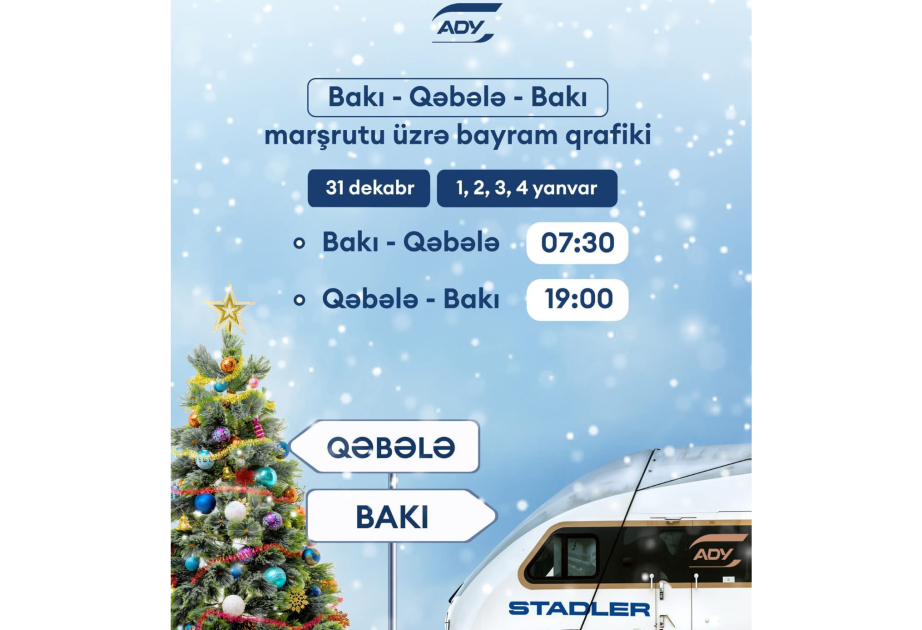 ADY-dən SİA-ya bildirilib ki, 31 dekabr və 1, 2, 3 və 4 yanvar tarixlərində Bakı-Qəbələ-Bakı;