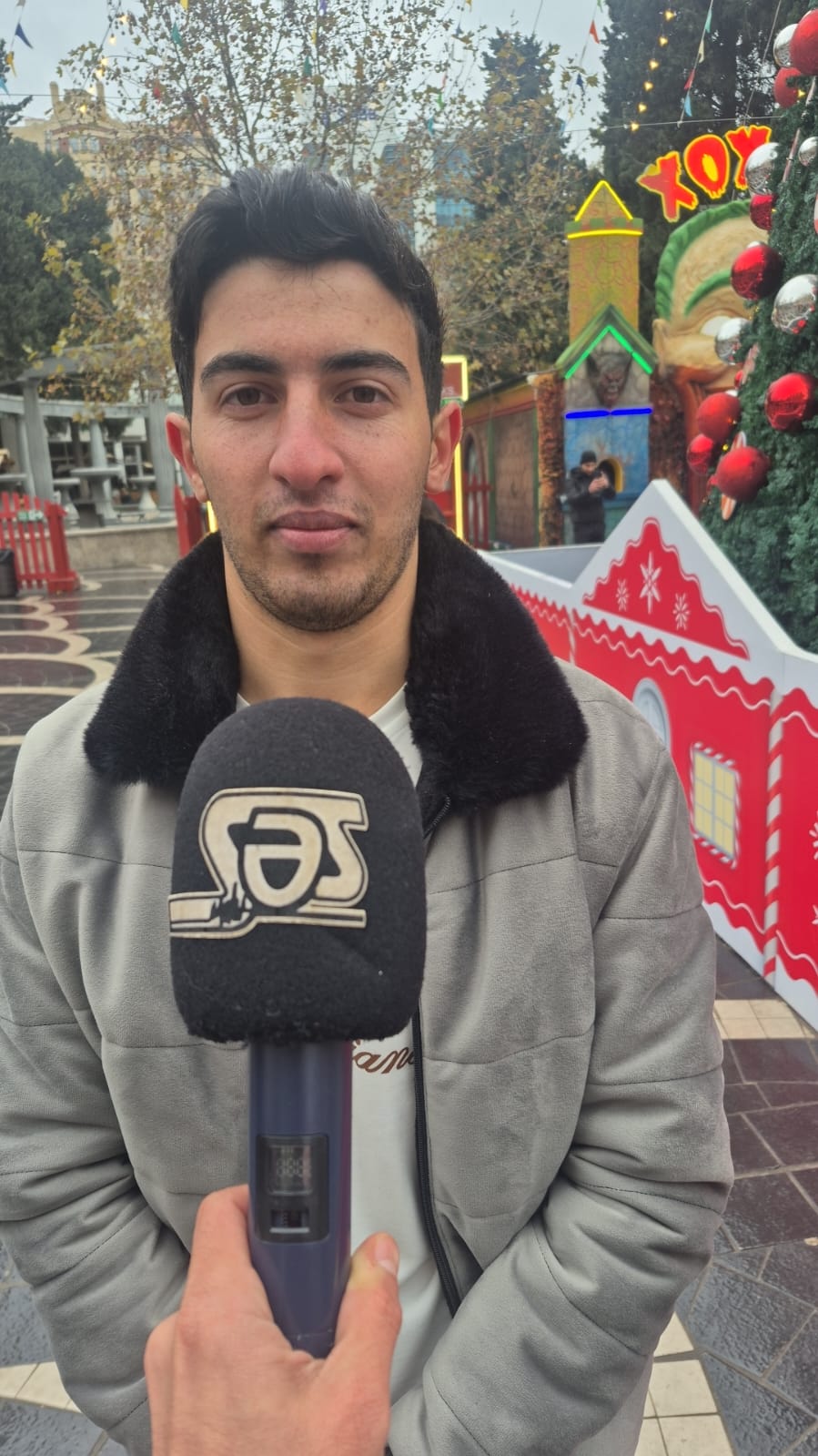 Şəhər sakini Tərlan Məmmədov: “2026-cı ili fərqli olaraq əsgərlikdə keçirəcəyəm. Bu da həyatımın məsuliyyətli dövrlərindən biridir. 2025-ci ili çox yaxşı başa vurduq. İnşallah, 2026 daha da yaxşı olar, ötən illərdən daha yaxşı keçər. Planlarımız çoxdur. Allahın köməyi ilə bütün planlarımı reallaşdıracağıma inanıram".
