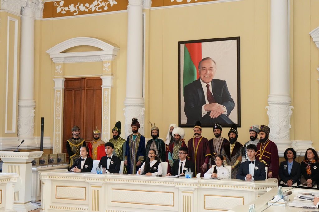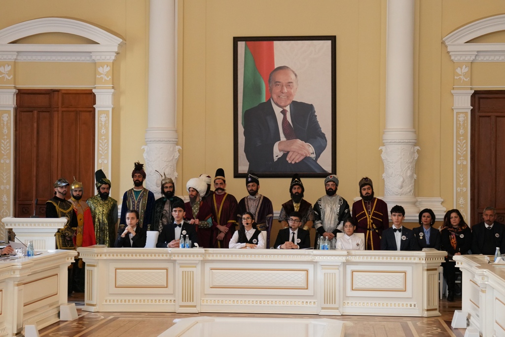 Tədbirin əvvəlində şagirdlər tariximizin müxtəlif dövrlərində mühüm rol oynamış böyük tarixi şəxsiyyətlərin obrazlarını canlandırıblar.