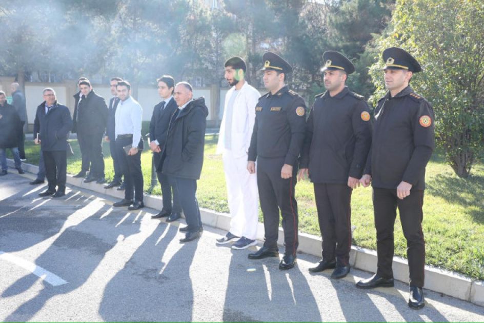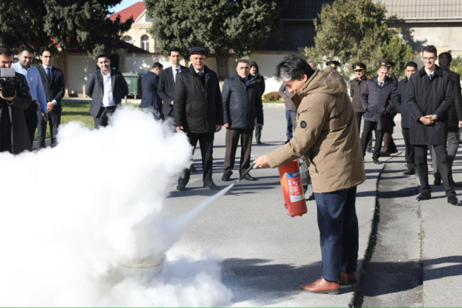 Daha sonra şərti yanğın elan edilərək “Həyəcan” siqnalı verilib. Yanğınsöndürən briqada operativ şəkildə hadisə yerinə cəlb olunaraq şərti yanğının söndürülməsi üzrə tədbirlərə başlayıb. Əməkdaşların təxliyəsi təsdiqlənmiş təxliyə planına uyğun olaraq təhlükəsiz və ardıcıl şəkildə həyata keçirilib. Şərti yanğın zamanı “zərərçəkmişlər” binadan müvafiq qaydalara uyğun çıxarılaraq təhlükəsiz zonaya yerləşdirilib və onlara “ilkin tibbi yardım” göstərilib.