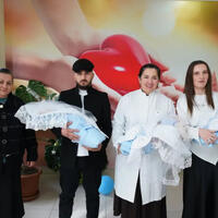 Əməliyyatla qadının çəkiləri 1400, 1600, və 1800 qram olan üçəm övladları (hər üçü kişi cinsli) dünyaya gəlib. Körpələrdən birinin vəziyyəti çox ağır olduğundan süni ventilyasiya aparatına qoşulub. Üçəmlərin hər birinə dövlət təminatlı “Curosurf 120 mq.” preparatı yeridilib və tənəffüs dəstəyi ilə təmin olunub.
