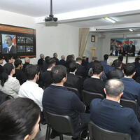 Sonra Ulu Öndər Heydər Əliyevin və vətənimizin müstəqilliyi uğrunda canlarından keçmiş qəhrəman şəhidlərimizin xatirəsi bir dəqiqəlik sükutla yad edilib, Dövlət Himni səsləndirilib.
