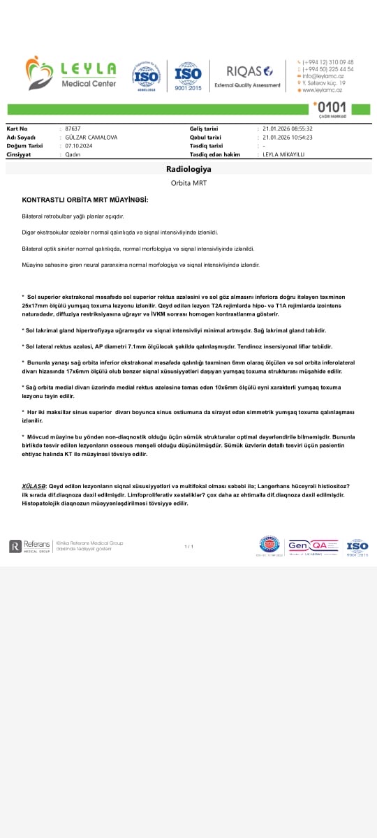 Həkimlərin verdiyi məlumata görə, körpənin göz qapağının arxa divarında, orbitaya yaxın nahiyədə törəmə aşkarlanıb. Uşağın həyatının xilas olunması üçün təcili cərrahi əməliyyatın aparılması zəruridir.