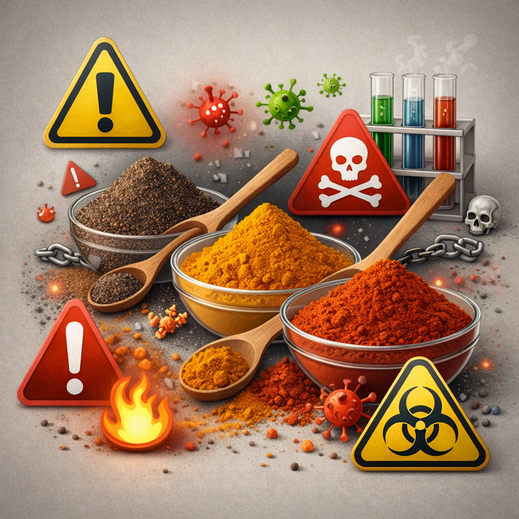 Toz halında satılan ədviyyatlar gündəlik mətbəx istifadəsi üçün ideal olsa da, mümkün saxtakarlıq, ağır metallarla kontaminasiya, mikroorqanizmlər və kimyəvi qatqılar təhlükəli ola bilər. Buna görə də məsuliyyətli seçim, təhlükəsizlik etiketlərinin yoxlanması və mümkün olduqda bütöv ədviyyatların evdə üyüdülməsi tövsiyə edilir.