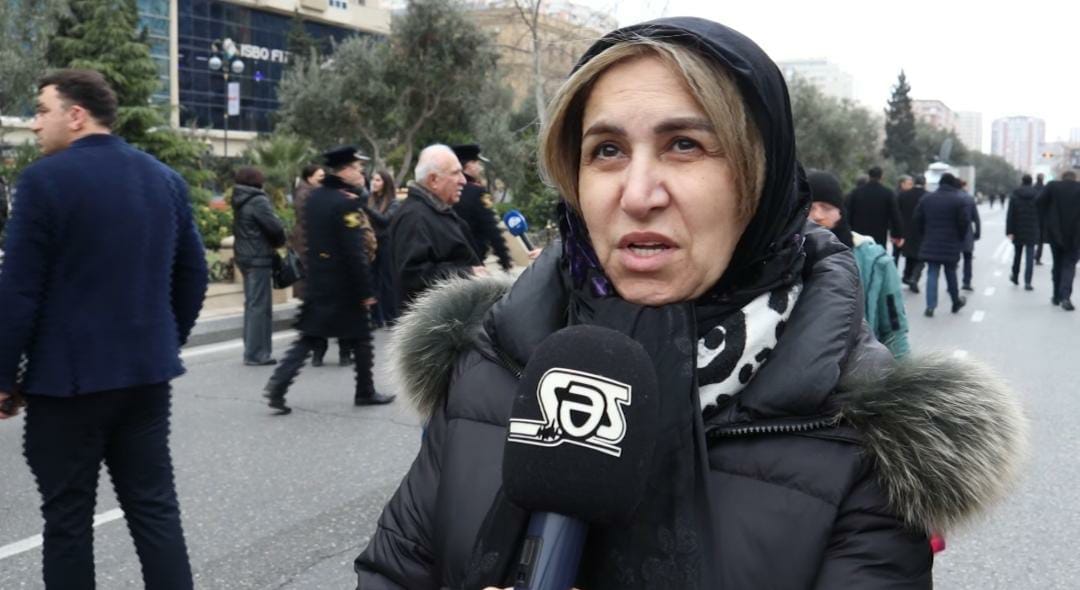 Şəhər sakini Aynur Quliyeva: “Həyat yoldaşım Xocalı şəhididir. Uzun illər itkin düşmüşdü, 30 ildən sonra nəşi tapılaraq gətirildi və biz onu torpağa tapşırdıq. O, böyük qəhrəmanlıq göstərmişdi. Yoldaşım - Quliyev Elçin Balaxan oğlu - Xocalı faciəsində həyatını itirən qəhrəmanlardan biridir. İstərdim ki, onun qəhrəmanlığı dövlət tərəfindən medalla qiymətləndirilsin. Çünki bu qəhrəmanlar heç vaxt unudulmamalıdır. Bu həm mənim, həm də qızım üçün əziz bir yadigar olar. Bu gün buraya bütün şəhidlərimizi yad etməyə gəlmişəm. Arzum budur ki, gələcəkdə heç kim belə faciələr yaşamasın. Həmişə sülh və əmin-amanlıq olsun. Müharibəni heç kim yaşamamalıdır”.