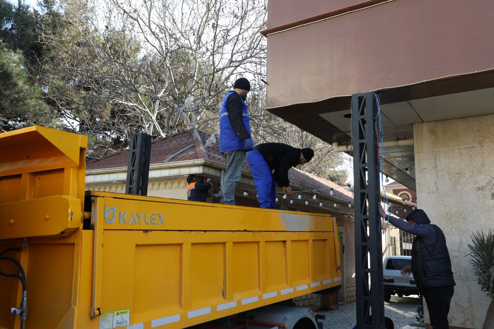 Bundan əlavə küçə işıq dirəylərinin lampaları dəyişdirilir, dirəklər rənglənir , ağaclar yuyulur və budanir, onlara aqrotexniki qulluq göstərilir. Vətəndaşların maneəsiz gediş-gəlişinin təmin olunması üçün piyada səkiləri təmir olunaraq bordürlər düzülür.