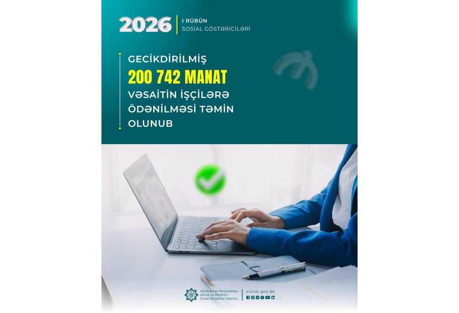 Əmək və Əhalinin Sosial Müdafiəsi Nazirliyi yanında Dövlət Əmək Müfəttişliyi Xidməti (DƏMX) yanvar-mart ayları ərzində işəgötürənlər tərəfindən sosial xarakterli ödənişlər olan 200 min 742 manat vəsaitin işçilərə ödənilməsinin gecikdirildiyini müəyyən edib.