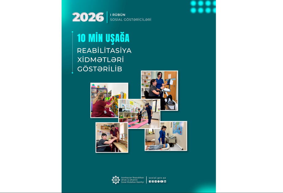 Əmək və Əhalinin Sosial Müdafiəsi Nazirliyinin tabeliyində Dövlət Tibbi-Sosial Ekspertiza və Reabilitasiya Agentliyinin reabilitasiya mərkəzləri tərəfindən bu ilin yanvar-mart aylarında 10 min uşağa reabilitasiya xidmətləri göstərilib.