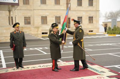 Sonra daxili işlər naziri Azərbaycan Prezidenti İlham Əliyevin müvafiq fərmanı ilə verilmiş döyüş bayrağını hərbi hissənin komandirinə təqdim edib. Azərbaycanın dövlət himni səsləndirilib.