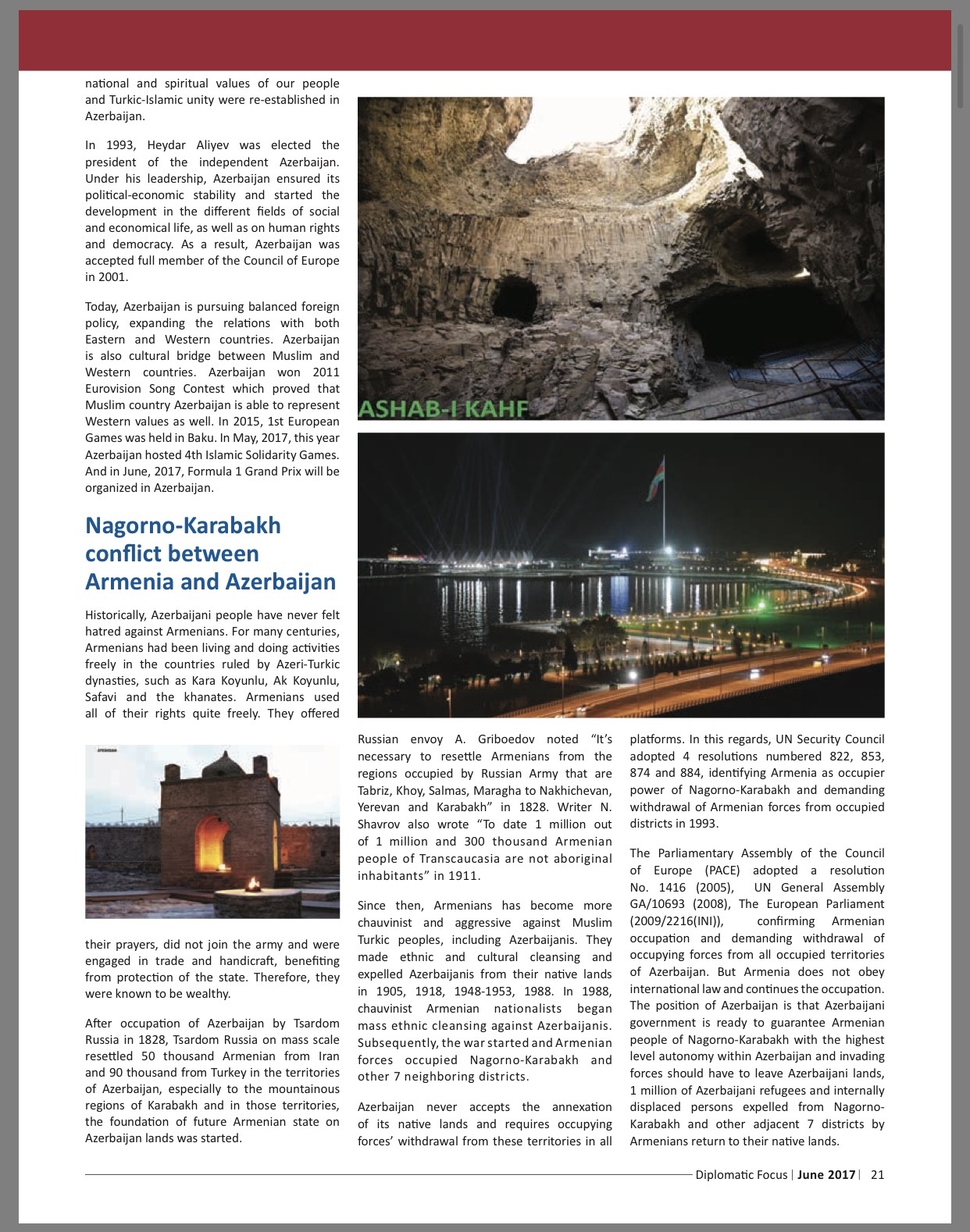 Məqalədə Azərbaycanın balanslı xarici siyasət xətti yeritdiyi, Qərblə Şərq arasında mədəni körpü rolunu oynadığı nəzərə çatdırılmışdır.
