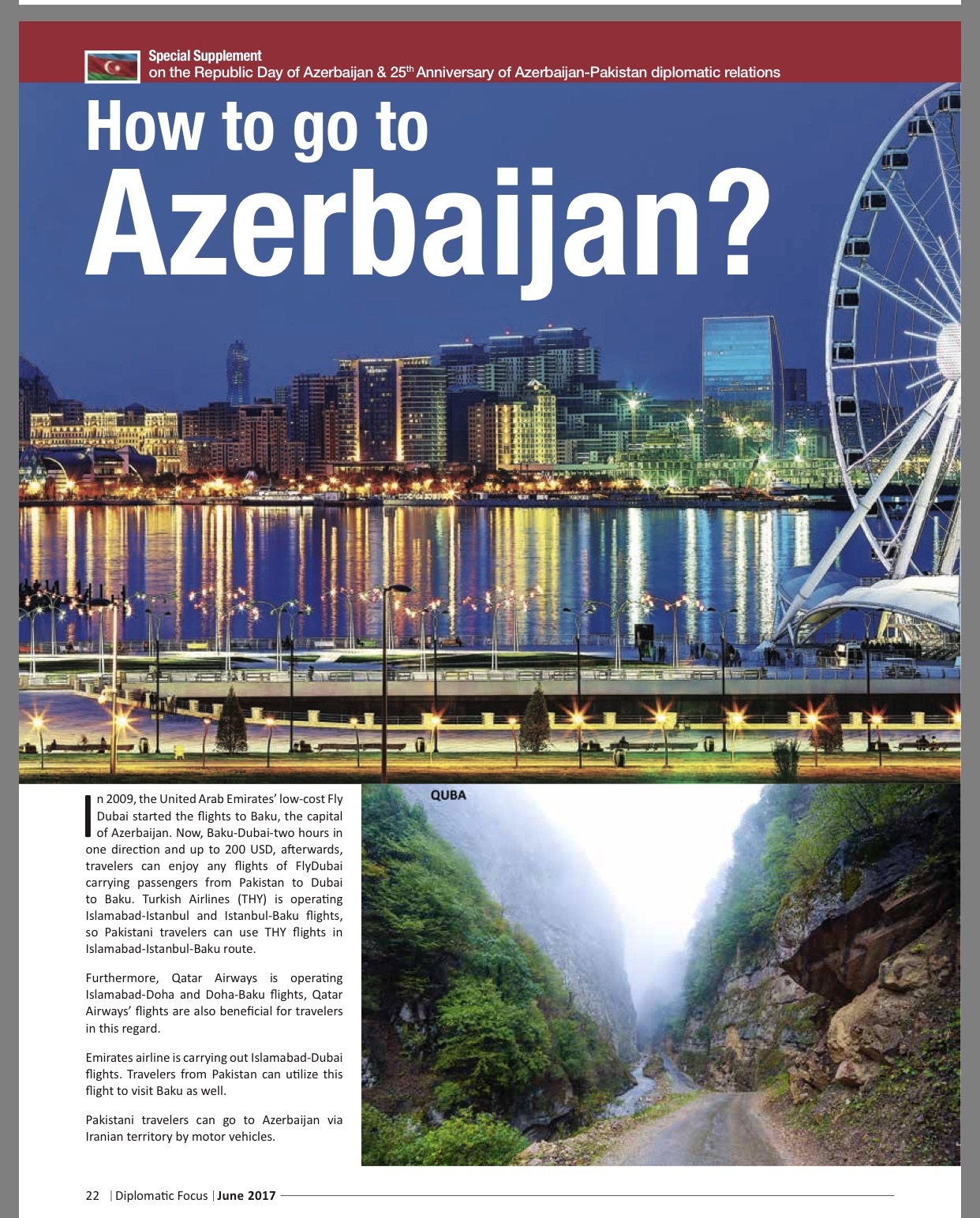 Məqalədə həmçinin, Azərbaycanın malik olduğu tarixi, dini və istirahət məkanları, həmçinin turistlərin Pakistandan Azərbaycana getməsinin əlverişli yolları, onlayn “ASAN Viza” sistemi barədə məlumat verilmişdir.
