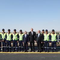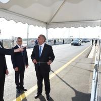 Dövlət başçısı yeni yolun rəmzi açılışını bildirən lenti kəsib.
