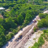 Torpaq işlərinin ardınca yol əsasının inşası, çiyin hissələrin bərkidilməsi və asfalt-beton