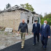 Müstəqim Məmmədov: Cənab Prezident, demək olar ki, 62 ev dağılmışdı. Onların 36-sı tamamilə hazırdır, təhvil verilib, 26-da isə son tamamlama işləri yaxın günlərdə başa çatacaq.