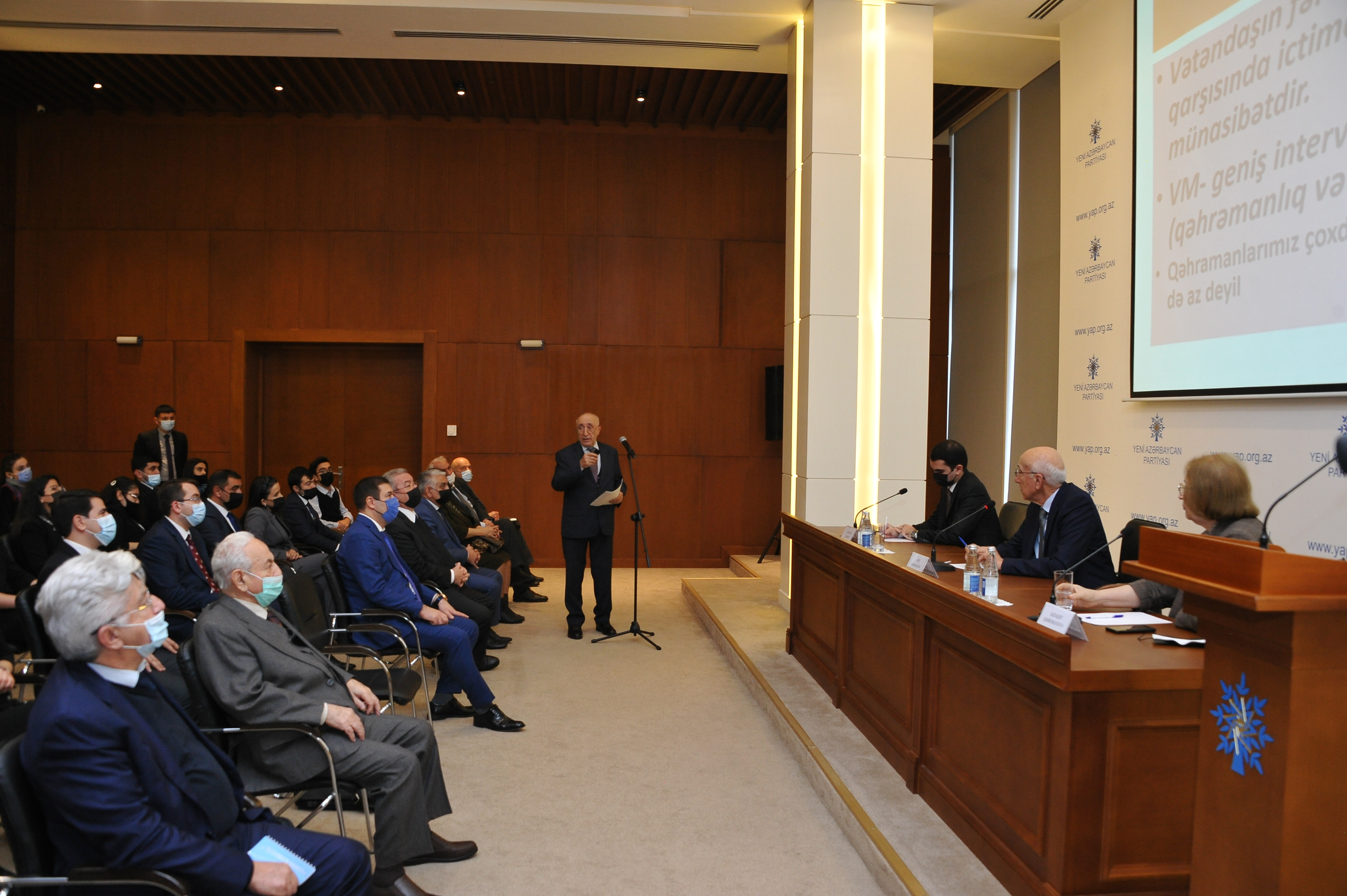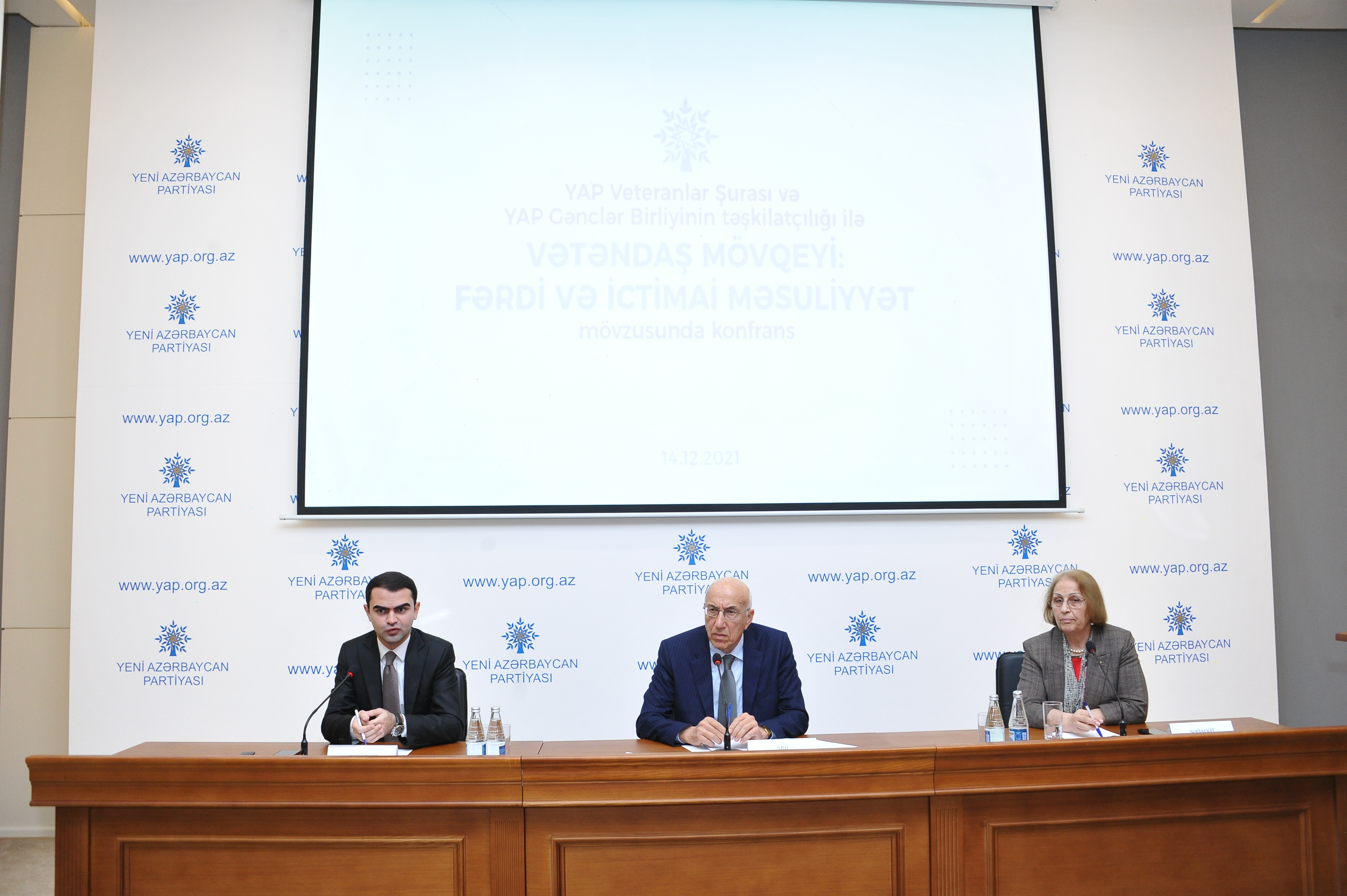 Dekabrın 14-də Yeni Azərbaycan Partiyasının Mərkəzi Aparatında partiyanın Veteranlar Şurasının və Gənclər Birliyinin birgə təşkilatçılığı ilə “Vətəndaş mövqeyi: fərdi və ictimai məsuliyyət” mövzusunda konfrans keçirilib. SİA xəbər verir ki, tədbiri giriş sözü ilə açan YAP Veteranlar Şurasının sədri Arif Rəhimzadə konfransın aktual mövzuya həsr olunduğunu bildirib. O qeyd edib ki, hər bir cəmiyyətdə fərdi və ictimai məsuliyyət mühüm amildir.
