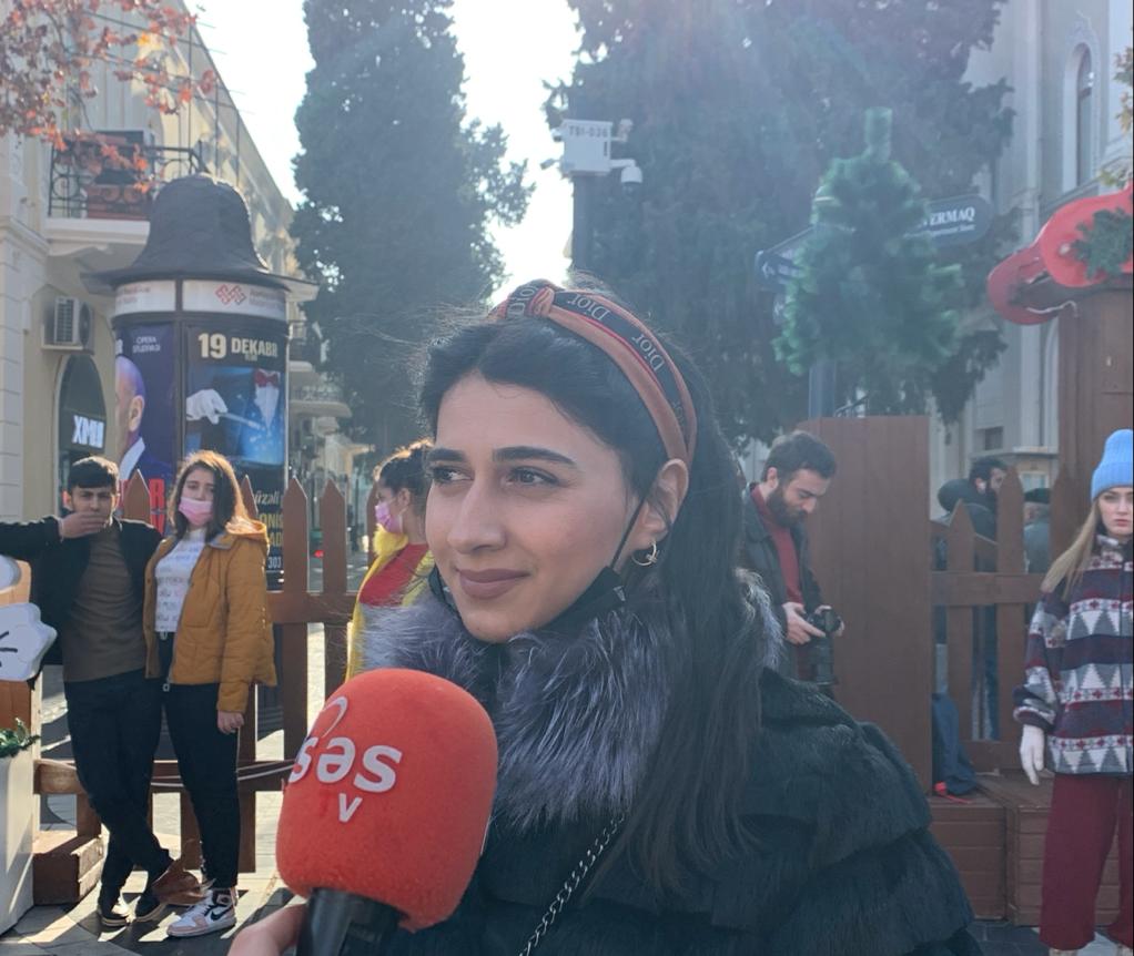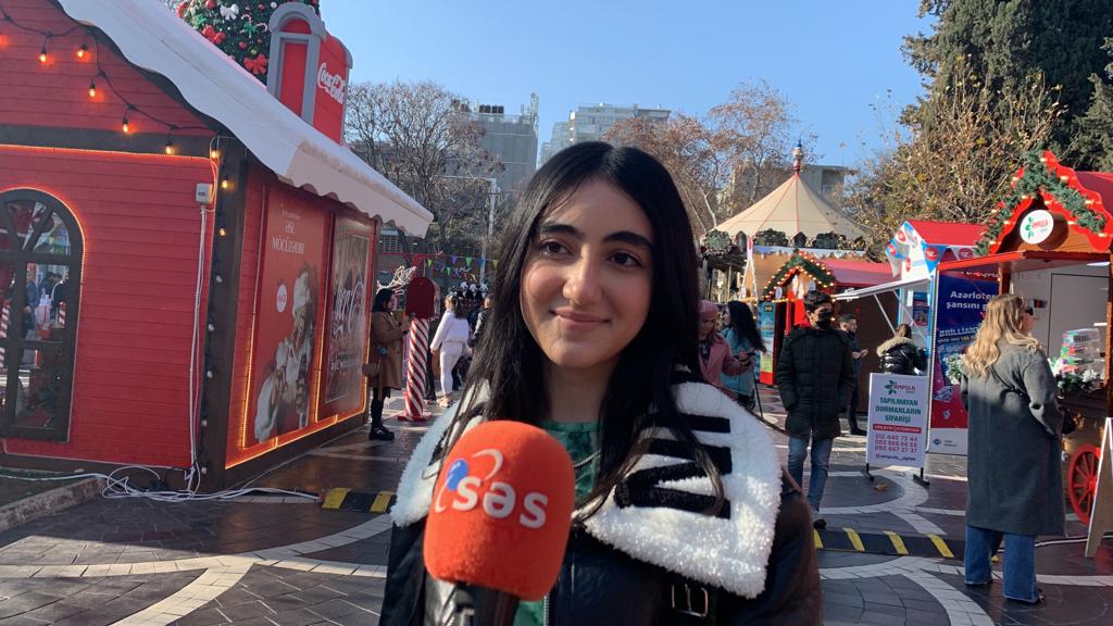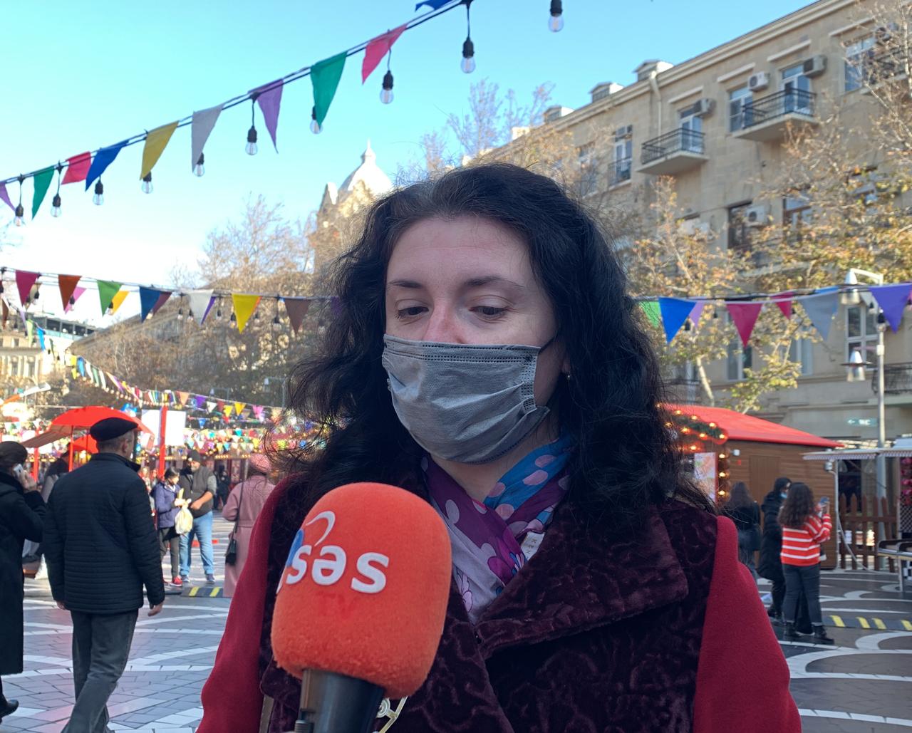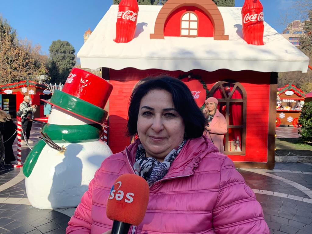 Şəhər sakini Könül Məmmədova: "Görünüş olaraq yarmarkanı çox bəyənirəm. Ümumiyyətlə mən Yeni ilə bağlı bütün şeyləri çox böyük maraqla qarşılayıram. Düşünürəm ki, belə bir lahiyənin bizim ölkəmizdə keçirilməsi çox sevindirici bir haldır".