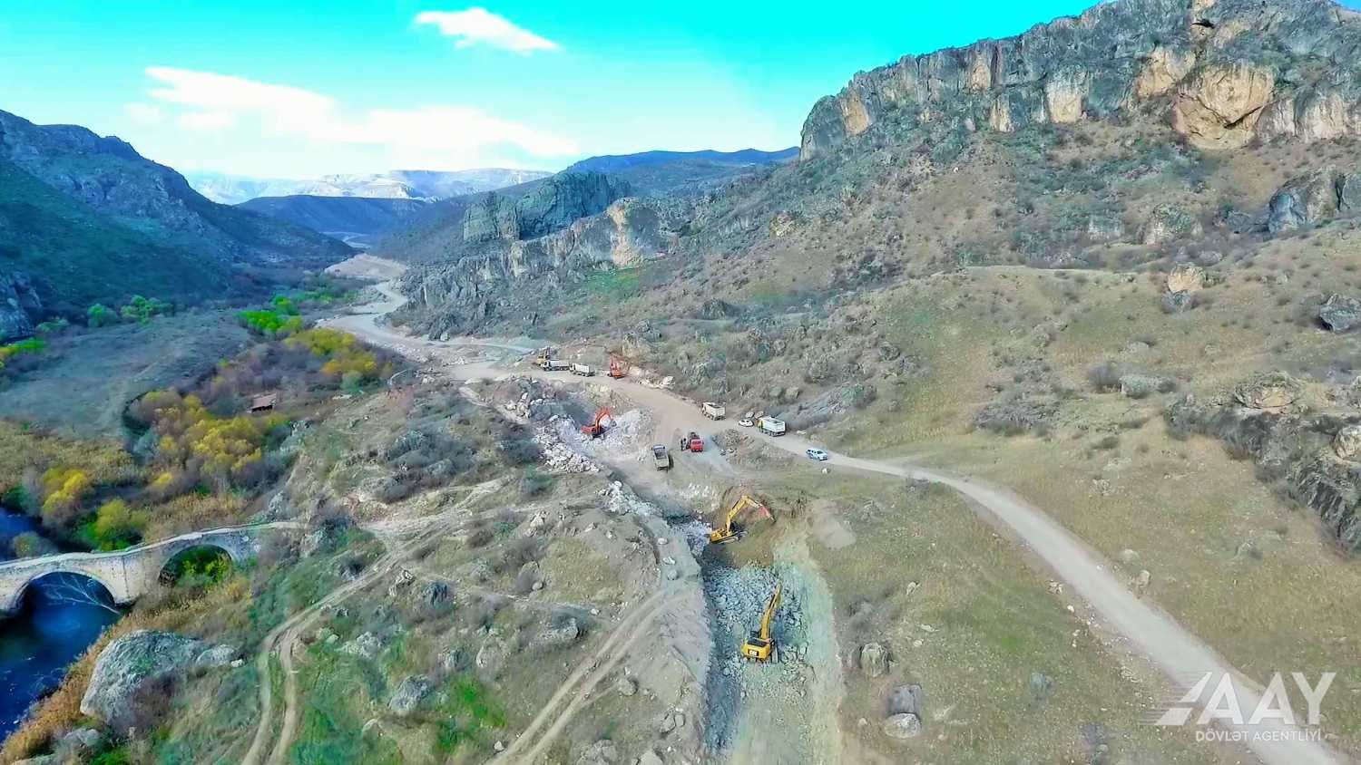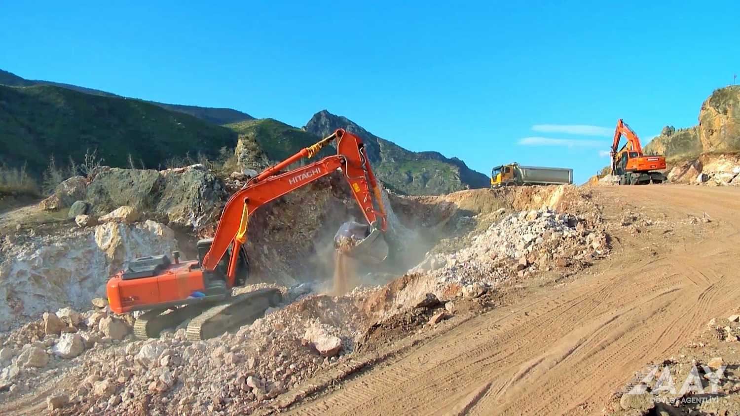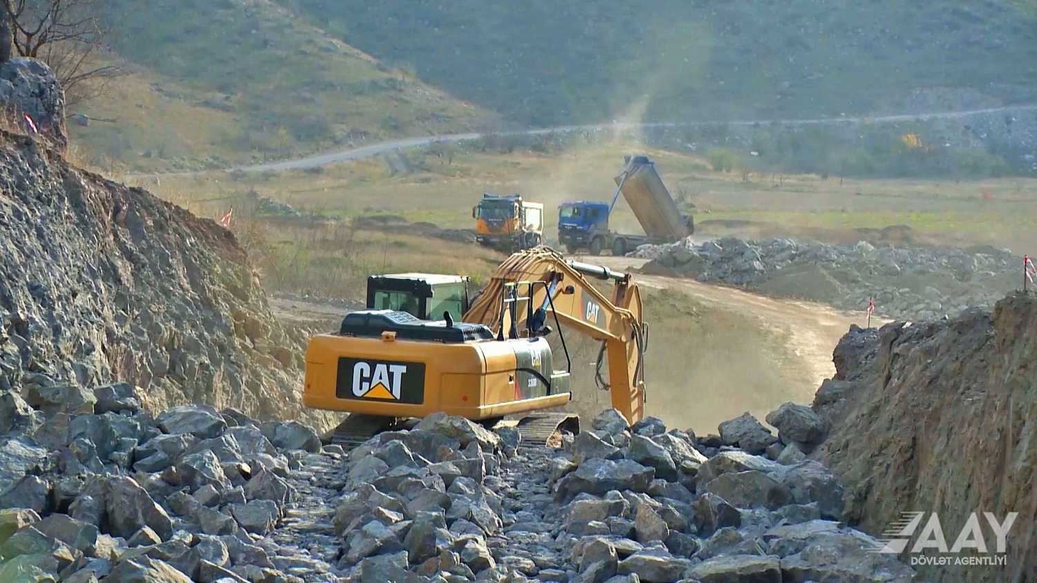 “İnşaat Norma və Qaydaları”na uyğun olaraq Qubadlı rayonu ərazisində Eyvazlı kəndinə gedən və çətin relyefə malik ərazidən keçən avtomobil yolunun layihə eninin alınması üçün qaya qruntları dağıdılmaqla torpaq yatağının tikintisi işləri davam etdirilir.
