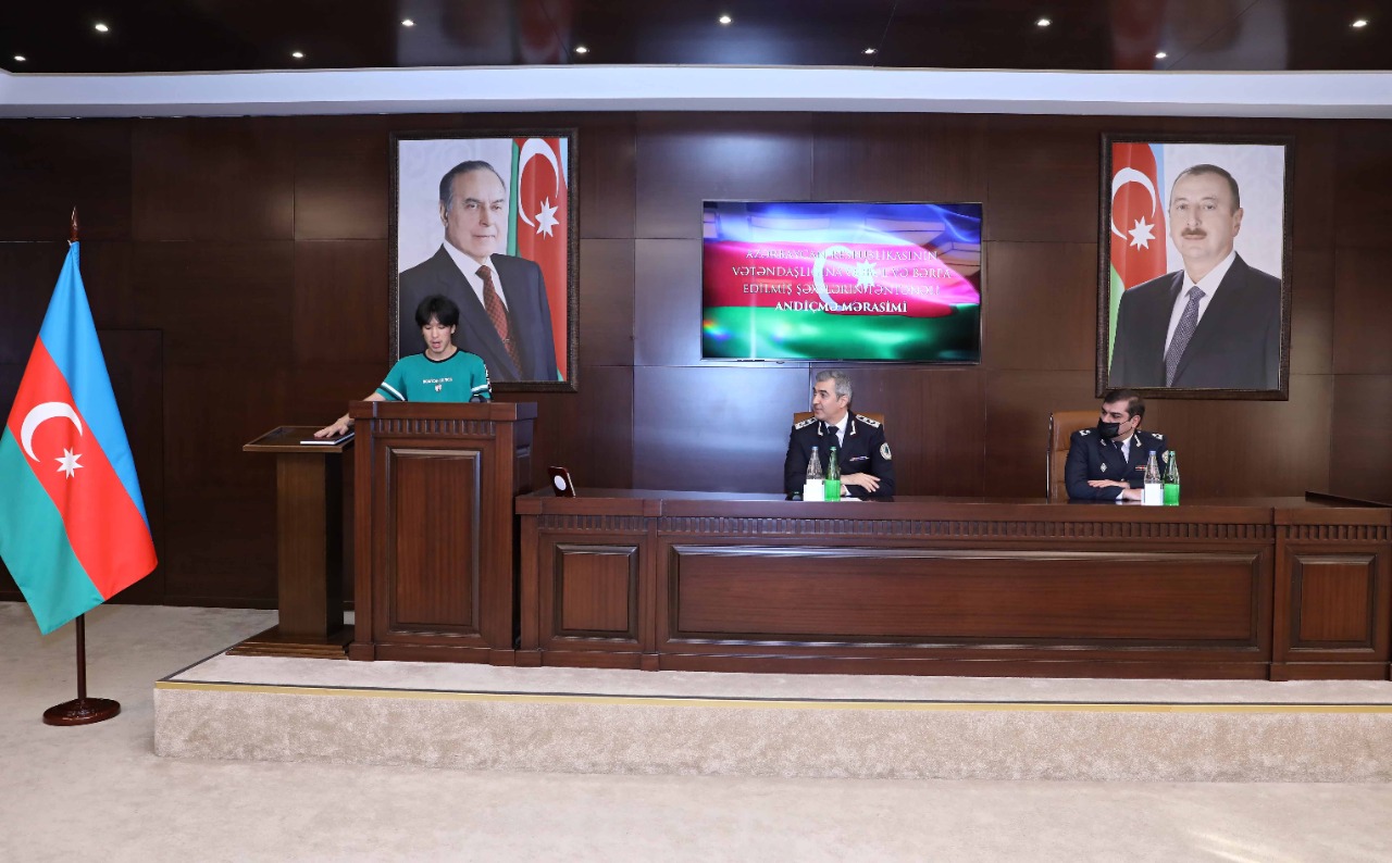 Ölkə Prezidenti cənab İlham Əliyevin müvafiq Sərəncamı ilə Azərbaycan Respublikasının vətəndaşlığına qəbul olunmuş 325 şəxsin, həmçinin Vətən müharibəsində Azərbaycan Respublikasının ərazi bütövlüyü uğrunda gedən döyüşlərdə iştirak etmiş, o cümlədən şəhid olmuş hərbi qulluqçuların ailə üzvləri olan 31 nəfərin Dövlət Miqrasiya Xidmətində (DMX) təntənəli andiçmə mərasimi keçirilib. Dövlət Miqrasiya Xidmətindən SİA-ya verilən məlumata görə, öncə torpaqlarımızın azadlığı uğrunda canlarından keçmiş şəhidlərimizin əziz xatirəsi bir dəqiqəlik sükutla anılıb.
