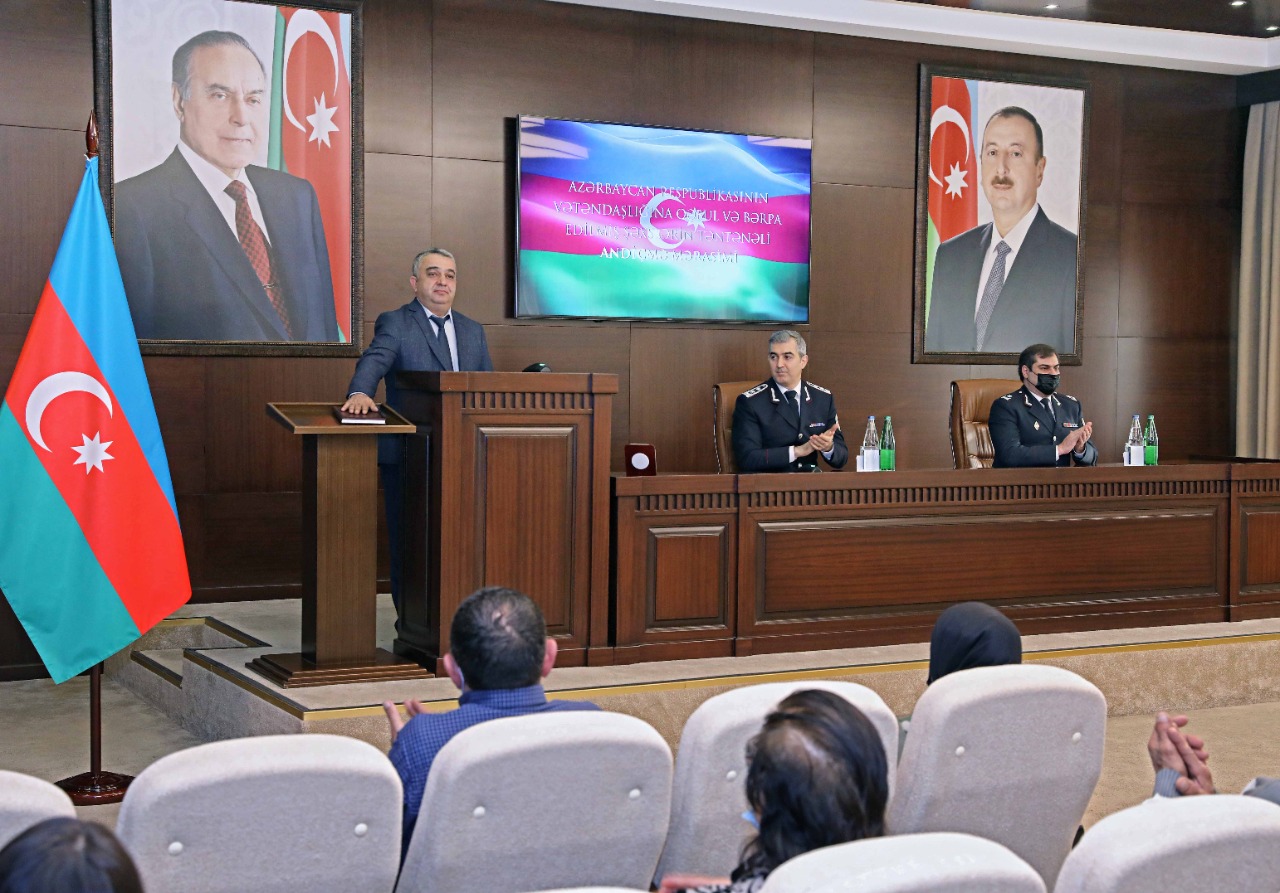 Tədbirdə çıxış edən Dövlət Miqrasiya Xidmətinin rəisi, II dərəcəli dövlət miqrasiya xidməti müşaviri Vüsal Hüseynov iştirakçılara Azərbaycan vətəndaşlığına qəbul edilmələri münasibətilə təbriklərini çatdırıb, vətəndaşlıq hüququnun əhəmiyyətindən, üstünlüklərindən bəhs edib. Bildirib ki, respublikamızın sabitlik, əmin-amanlıq, insanların firavan, sülh içində yaşamasına böyük qayğı ilə yanaşan müzəffər Ali Baş Komandan, Prezident cənab İlham Əliyevin rəhbərliyi ilə qələbə sevincini xalqımıza yaşadan ölkənin qalib vətəndaşı olmaq qürurvericidir.