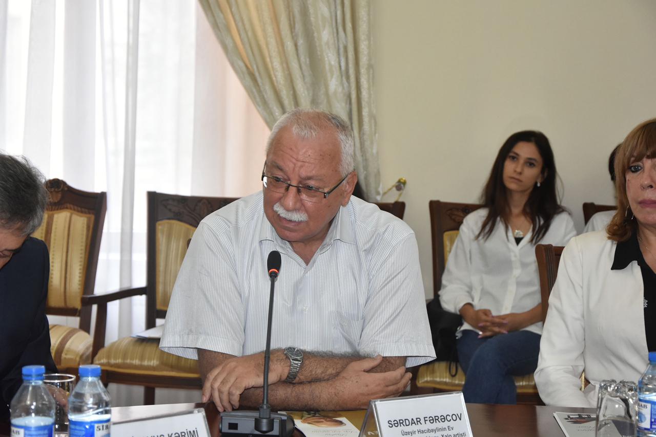 Üzeyir Hacıbəylinin Ev Muzeyinin direktoru, not məcmuələrinin redaktoru Xalq artisti Sərdar Fərəcov çıxış edərək kitabxananın rəhbərliyi başda olmaqla bütün əməyi keçənlərə təşəkkür edib, gələcəkdə Xalq çalğı alətləri orkestri üçün də vəsaitlərin hazırlanacağını söyləyib.