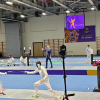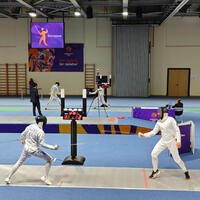 Azərbaycanın ev sahibliyi etdiyi III MDB Oyunlarında qılıncoynatma üzrə yarışlar davam edir. SİA-nın bölgə müxbirinin verdiyi məlumata görə, Gəncə İdman Sarayında reallaşan yarışlarda Azərbaycan təmsilçiləri daha bir bürünc medalı özləri üçün təmin ediblər. Şpaqa növündə mübarizə aparan təmsilçilərimiz Mirxətai Məmmədov və Vahab Fətullayev 1/4 finalda bir-birlərinə rəqib olublar. Bu cütün qalibi yarımfinala vəsiqə qazanaraq, ən azı bürünc medalı özü üçün təmin edəcək.