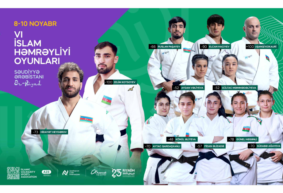 Səudiyyə Ərəbistanının paytaxtı Ər-Riyadda keçiriləcək VI İslam Həmrəyliyi Oyunlarında iştirak edəcək Azərbaycan cüdoçuları açıqlanıb. Azərbaycan Cüdo Federasiyasından SİA-ya bildirilib ki, ölkəmizi turnirdə 12 idmançı təmsil edəcək.